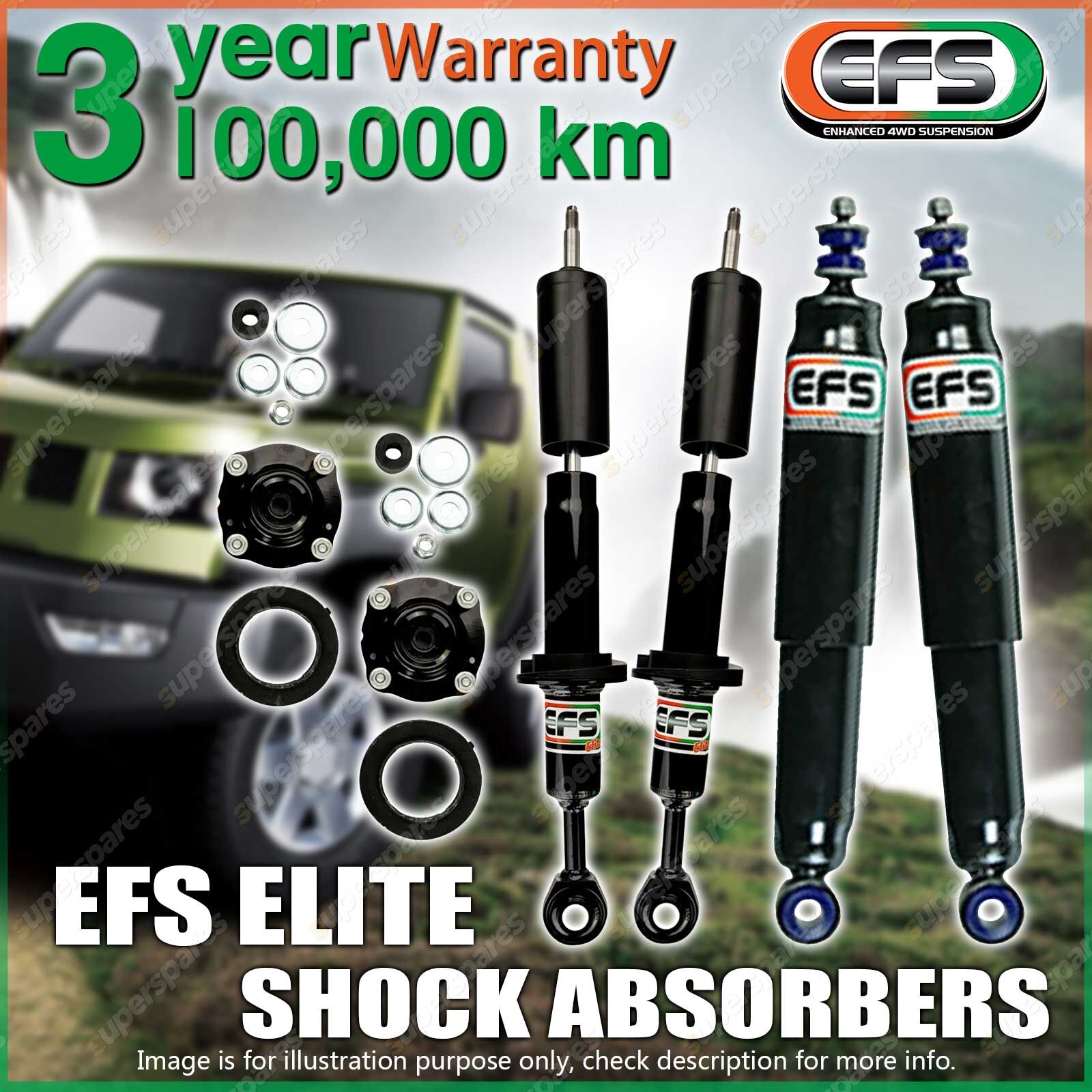Specifications: EFS Elite Shock Absorber----The EFS Elite Shock Absorber Range is developed for the 4wd owner who only pursues the best for their 4wd. EFS is built with high quality Internal & external components combined together to give you excellent performance and longevity. EFS shock absorbers are vehicle & height specific with valving developed to suit each vehicle. "Not a one shock suits all approach".