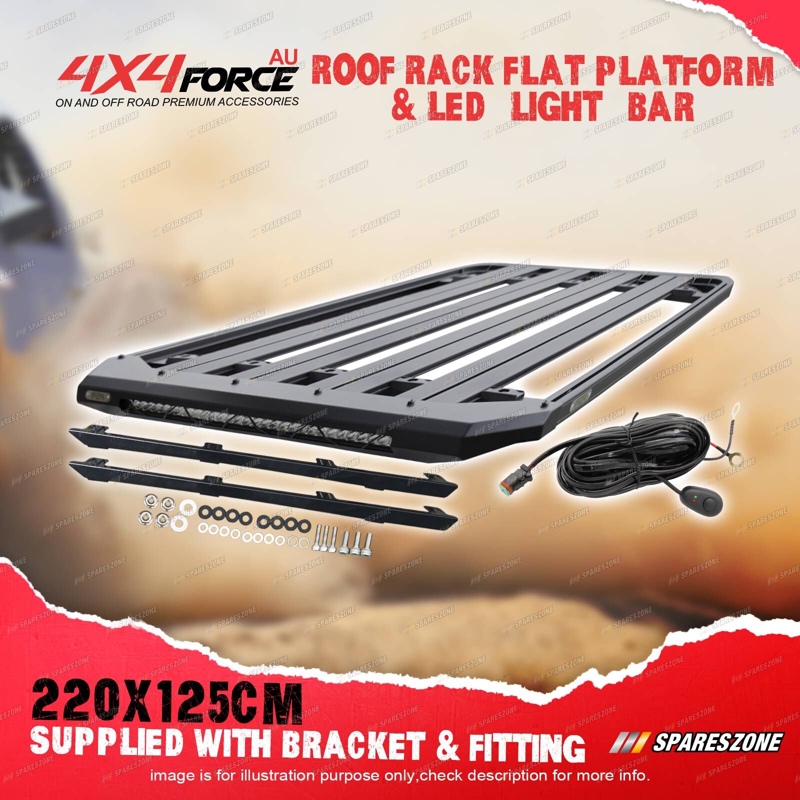 1 Set 4X4FORCE Aluminium Alloy Heavy Duty Roof Rack Flat Platform & LED Light Bar & Wire Kit (Note:Bracket with fitting included)