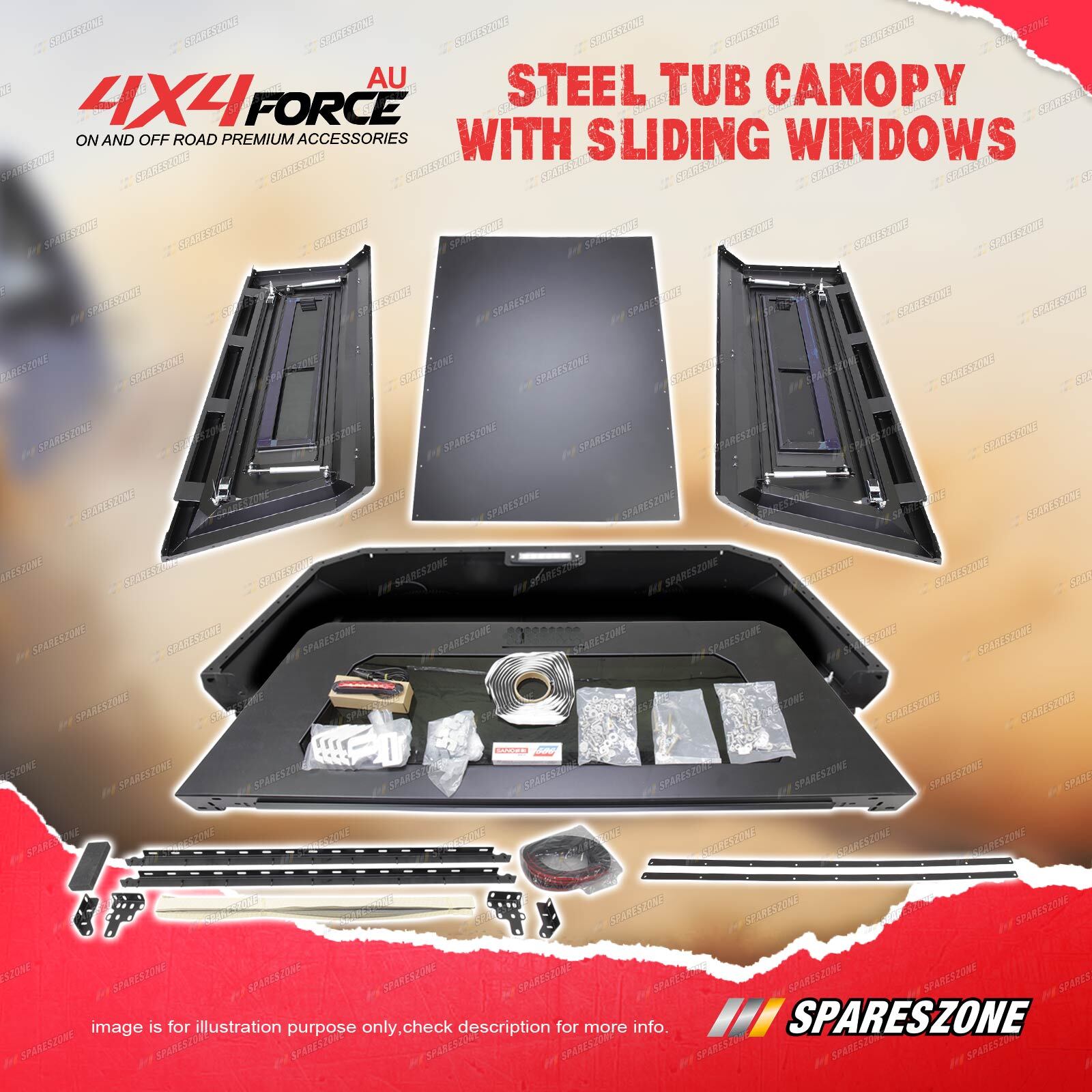 Ute Canopy 4X4FORCE Ute Tub Canopy are Made From 1mm-3mm heavy duty galvanized steel Plate to Prevent Rust and Corrosion, and field tested extensively to withstand harsh Australian conditions. 4X4FORCE Ute Steel Tub Canopy Suitable for Great Wall Cannon Dual Cab Models. |