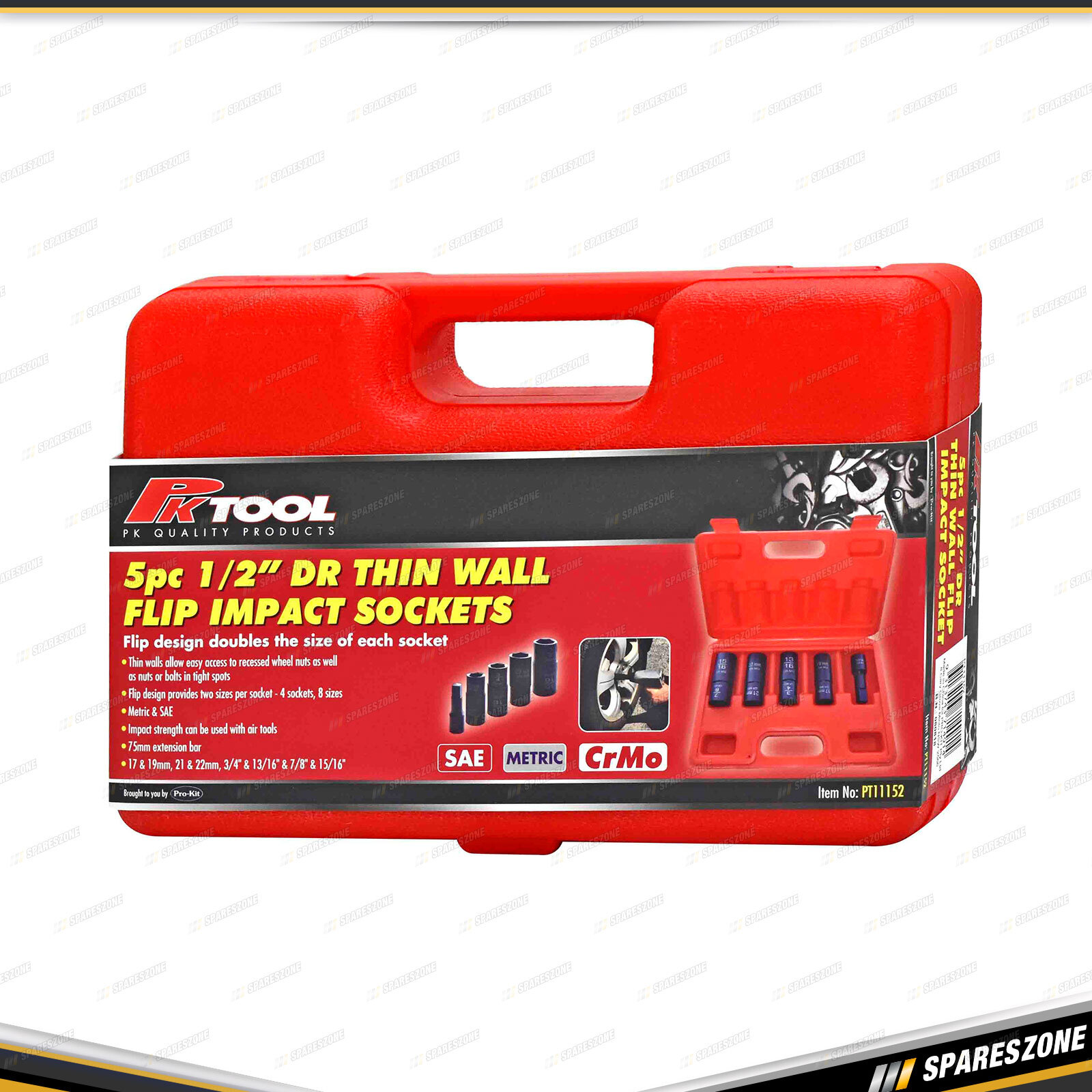 Contents : 5 Pcs of PK Tool 1/2 Inch Drive Thin Walled Flip Impact Socket Set