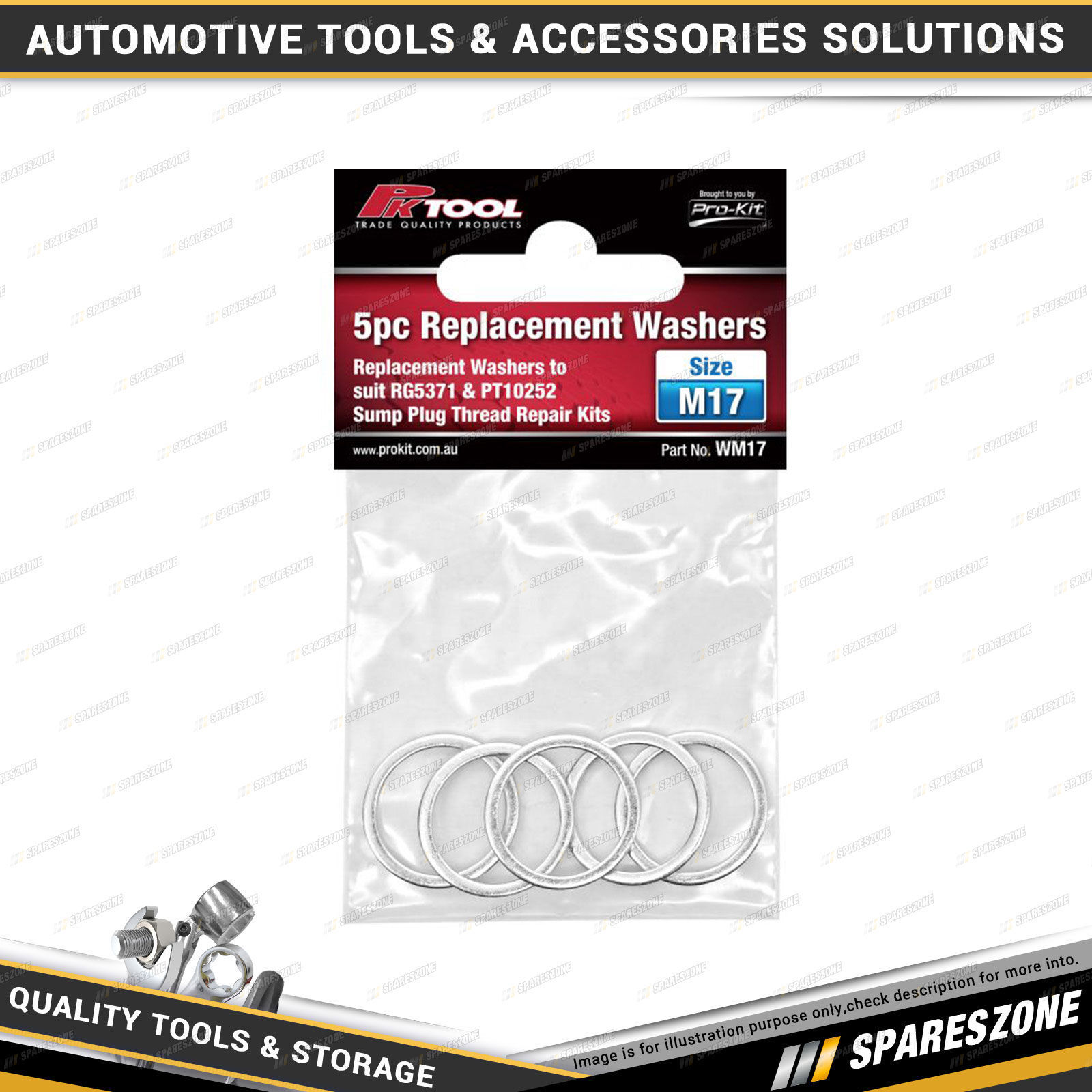 Contents : PK Tool 5pc Replacement Washers M17