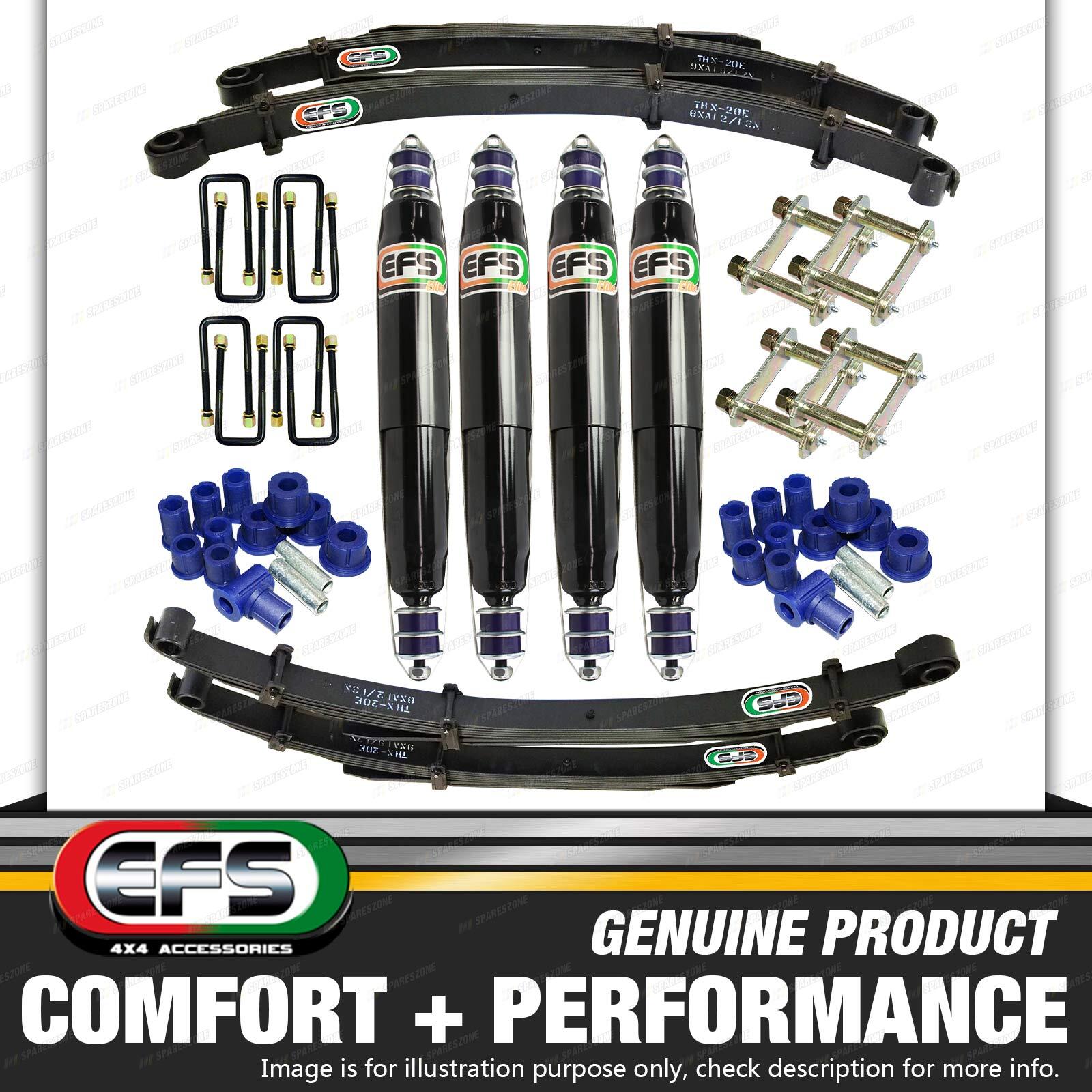 The Product Benefits at A Glance Low Pressure Nitrogen Gas -To prevent the oil from cavitation (foaming)EFSEnforcershocks Long Travel Design -To maximise wheel travel when a vehicle is raised and increase articulation 32mm Piston, Twin Tube Construction - Greater control of the spring during the rebound and compression cycles 15mm Quality Hardened Chromed Piston Rod -Increased durability 1.2mm Outer and Inner Wall Thickness -For greater durability and strength Dynamic Motion Control Technology - Adjusts to different road and off road conditions High Quality Internal & External Components - To prevent fade under harsh conditions and long life poly bushes for durability |