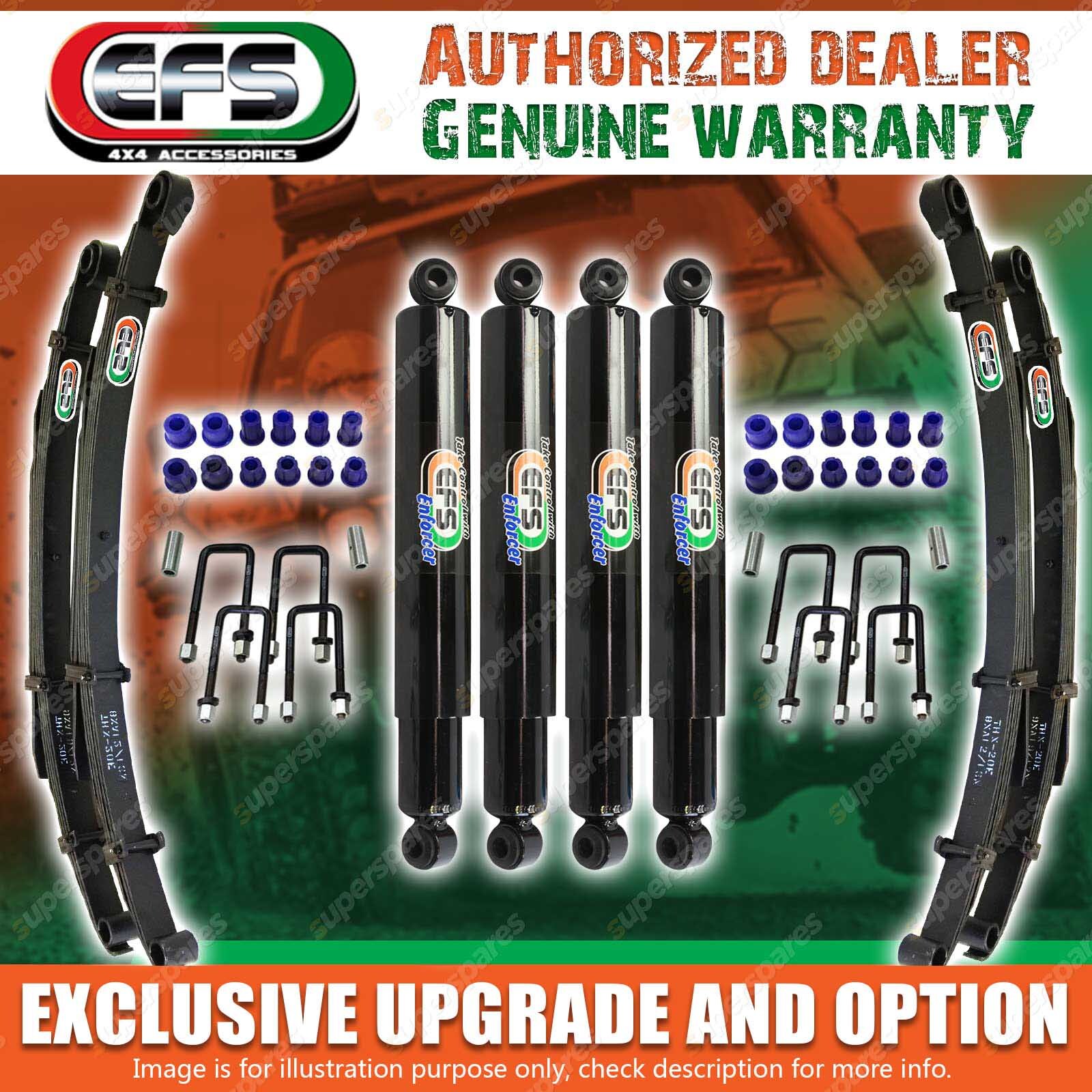 ![]() | EFS Enforcer Shock Absorbers EFS Enforcer is designed for the price conscious 4wd enthusiasts, who need a shock absorber that gets the job done. 51mm External Tube -For greater oil capacity & to keep the valve at a lower operating temperature. * Low Pressure Nitrogen Gas -To prevent the oil from cavitation (foaming) |
