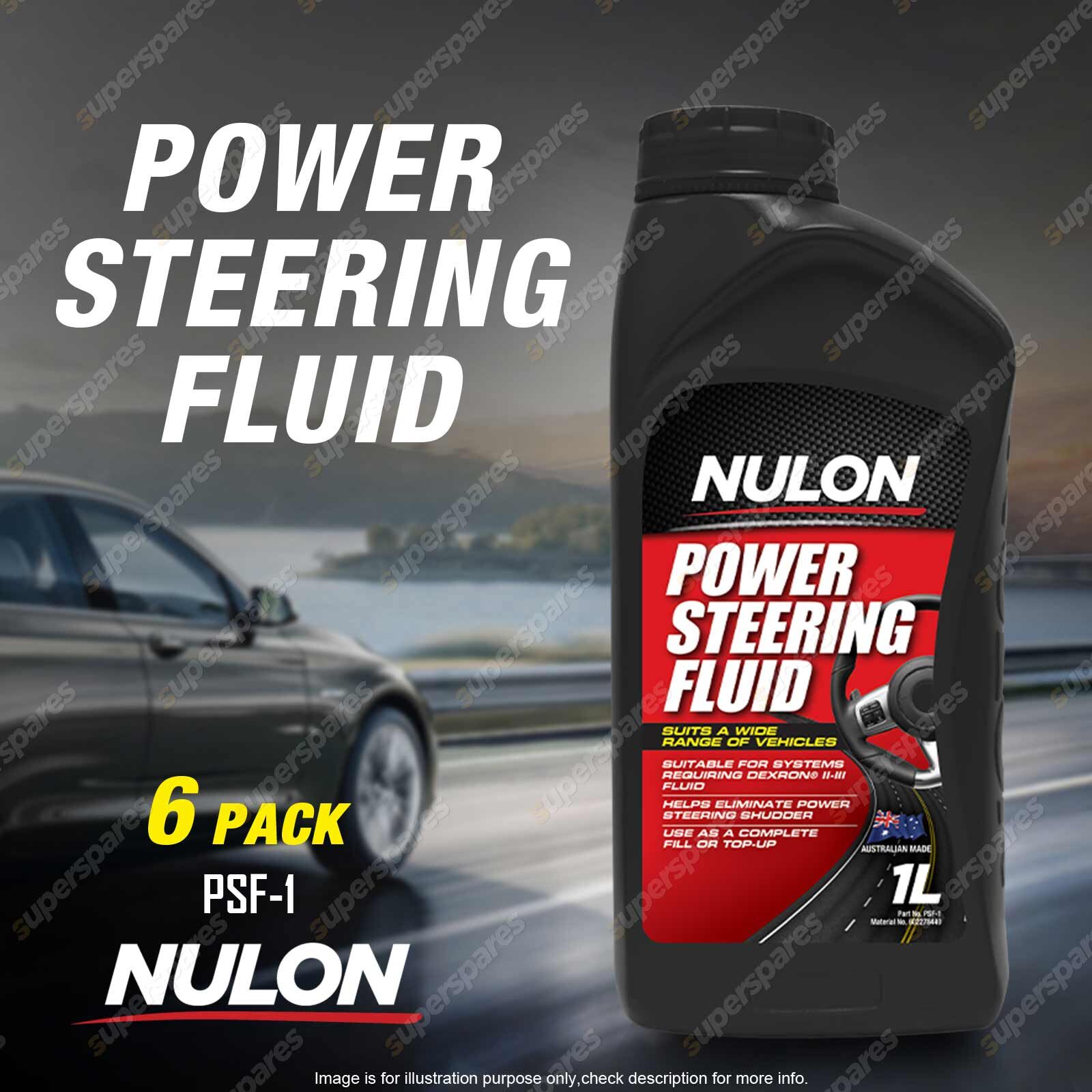 CONTENTS: 6 x Nulon Power Steering Fluid 1L