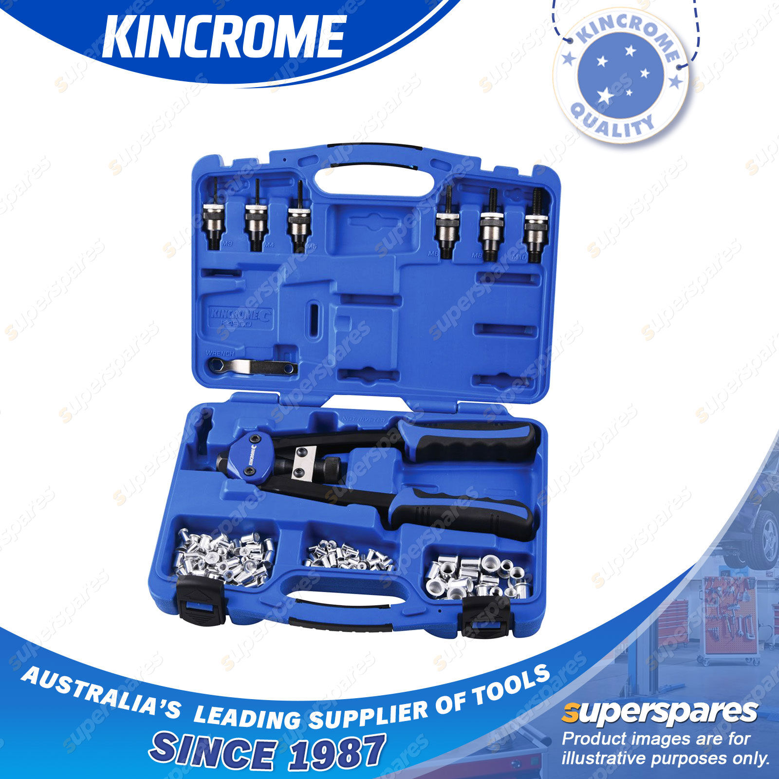 Contents : 68 Pcs of Kincrome Nut Riveter Kit Twin Handle
