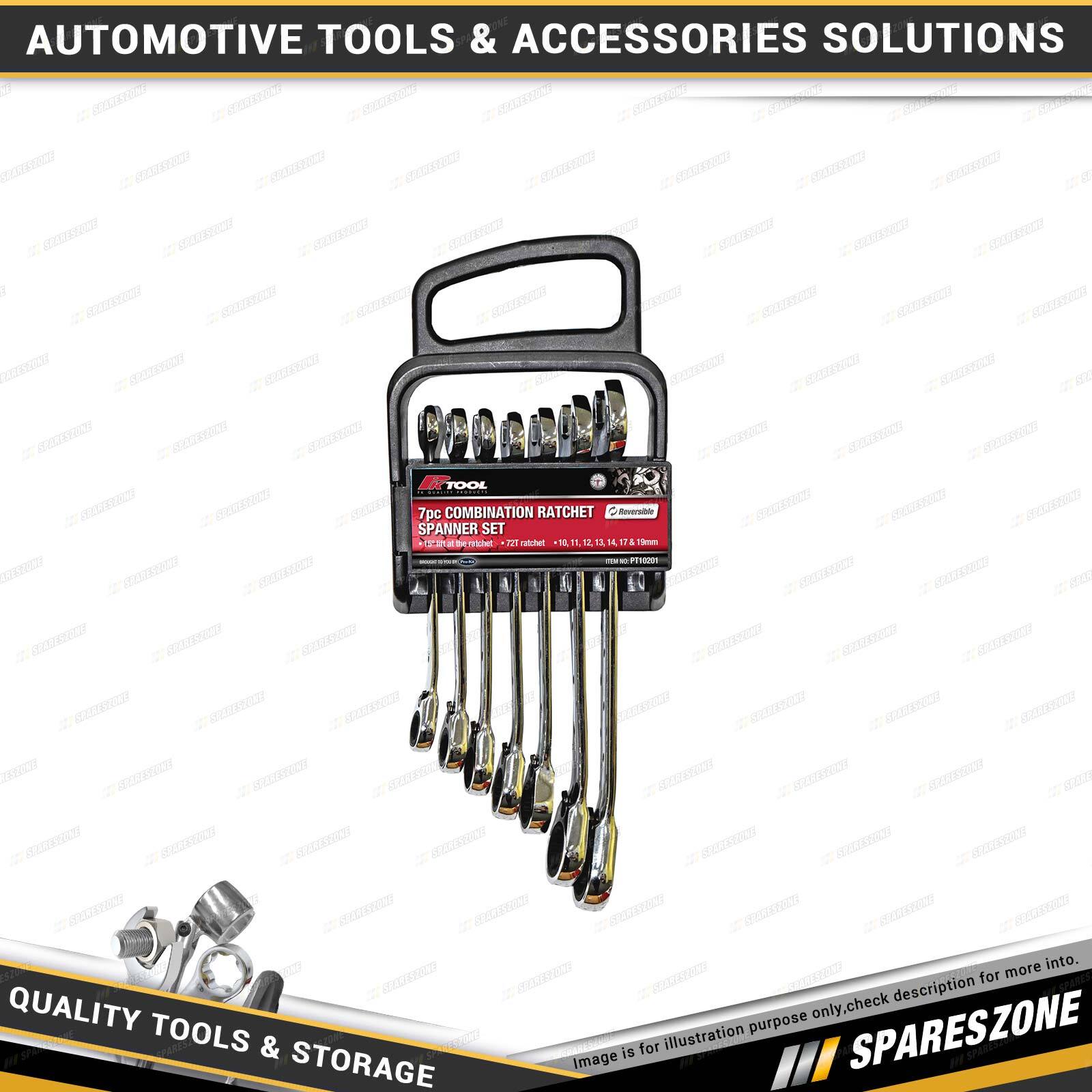 Contents : 7 Pcs of PK Tool Metric Reversible Cr-V Ratchet Combination Spanner Set