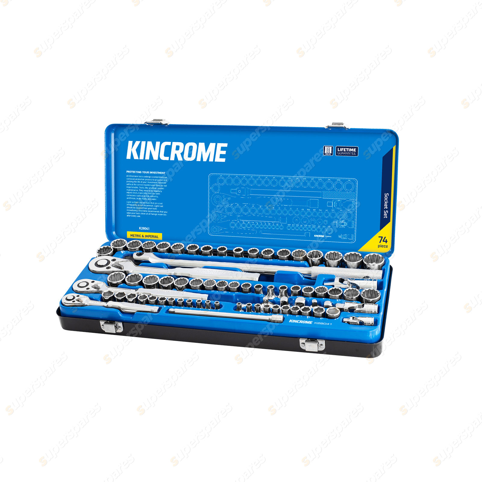 Contents : 74 Pcs of Kincrome 1/4 3/8 & 1/2" Drive Socket Set