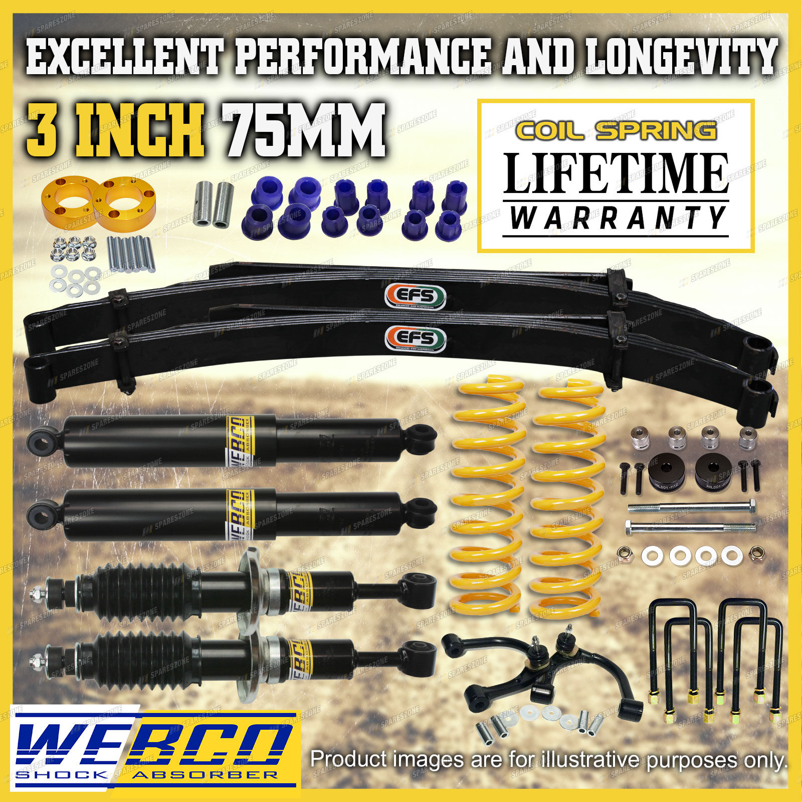 As car enthusiasts ourselves we completely understand the need for only wanting the best top quality aftermarket parts for your vehicle from a reliable and trustworthy source. We have utilised our understanding of this need to develop the best quality lift kits and build strong relationships with out valued customers; here's how... eBay have listed us as a "Top Rated Seller" with a 99.4% Positive feedback rating. We also offer a 30 day change of mind return period with a 100% fitment guarantee to ensure your peace of mind. Spareszone's lift kits offer an immense improvement in suspension performance and comfortability when compared to the standard stock suspension of your vehicle giving our customers a greater driving experience on and off road. |