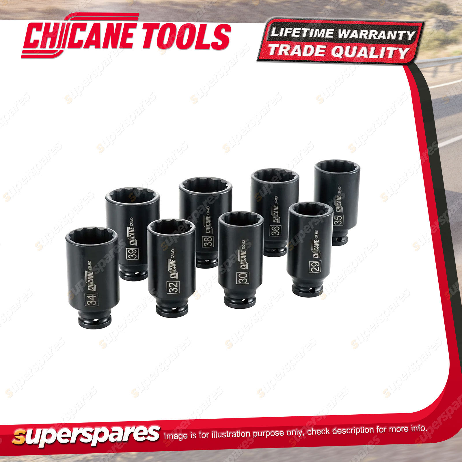 Contents : 8 Pcs of Chicane 1/2" Drive 12Pt Axle Nut Socket Set