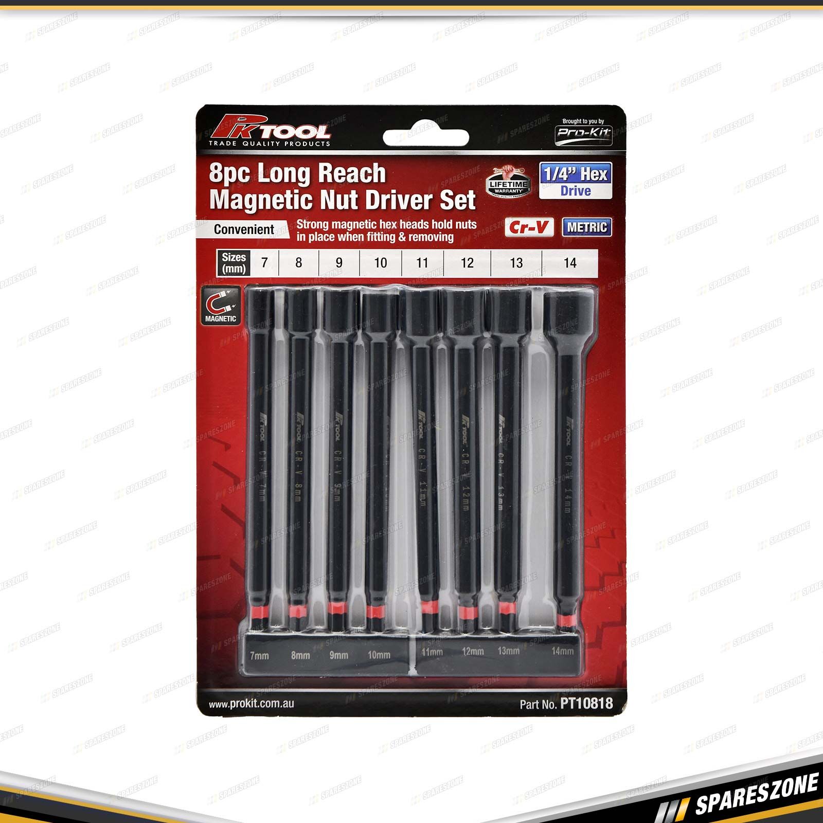 Contents : 8 Pcs of PK Tool Long Reach Magnetic Nut Driver Set - 1/4" Hex