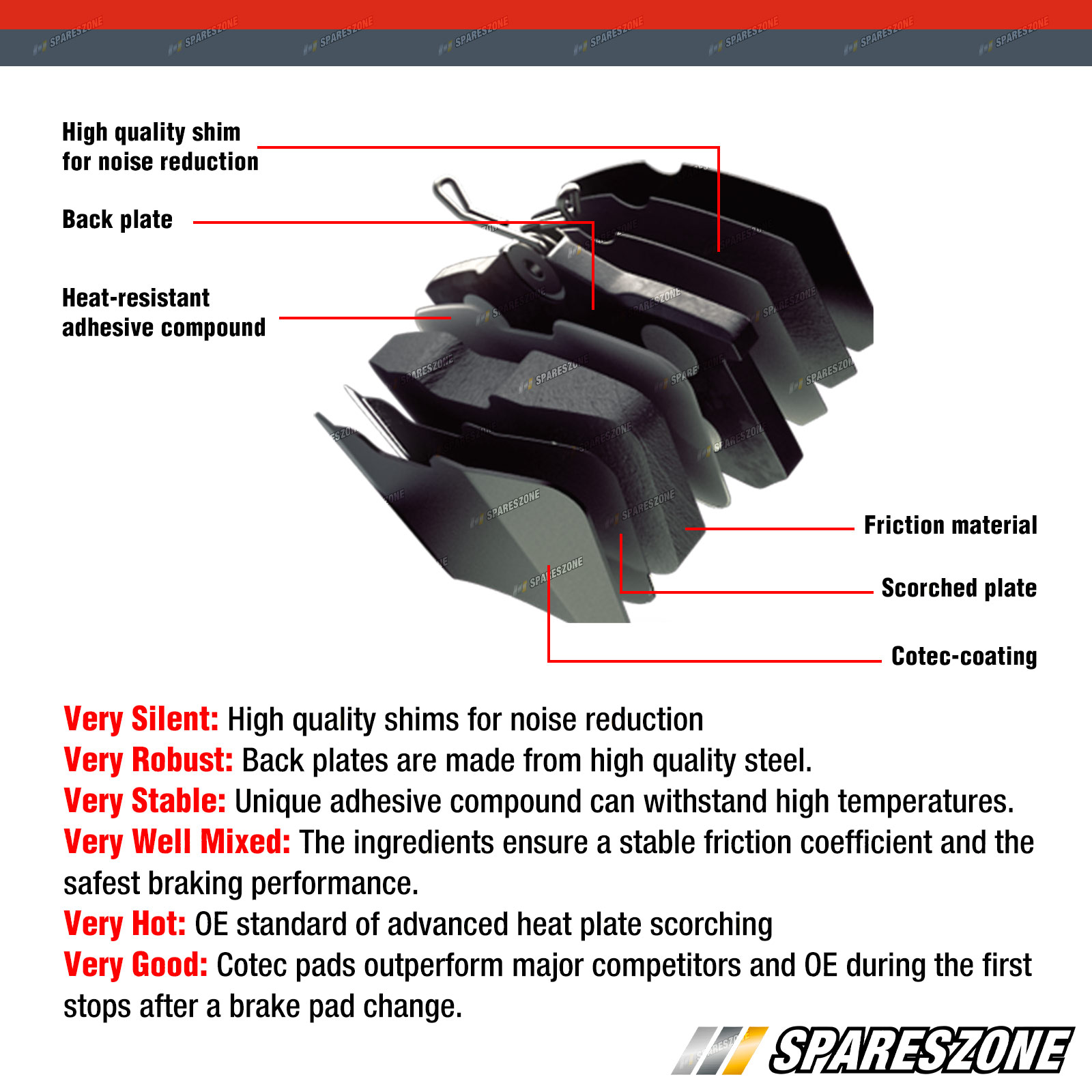 Our tests show that within the first 5 stops drivers using Cotec pads will notice a significant difference in their stopping times: In fact - compared to a brake pad which does not have our unique silicate coating, Cotec pads have optimum friction co-efficient right from the first stop - meaning that drivers have a better pedal feeling and can stop quicker during the 'green behaviour' of the pad, when it is first fitted. |