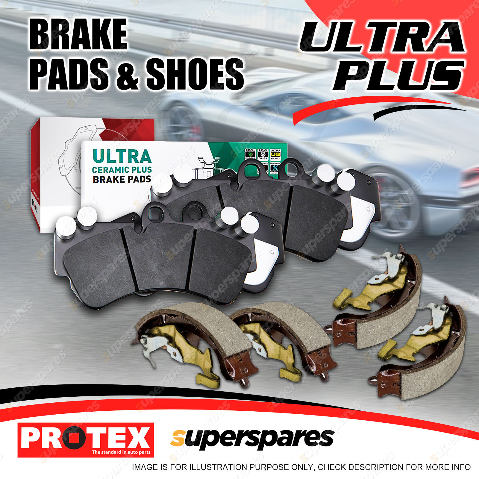 Contents : 4Pcs Front Ultra Ceramic Disc Brake Pads + 4Pcs Rear Brake Shoes Set