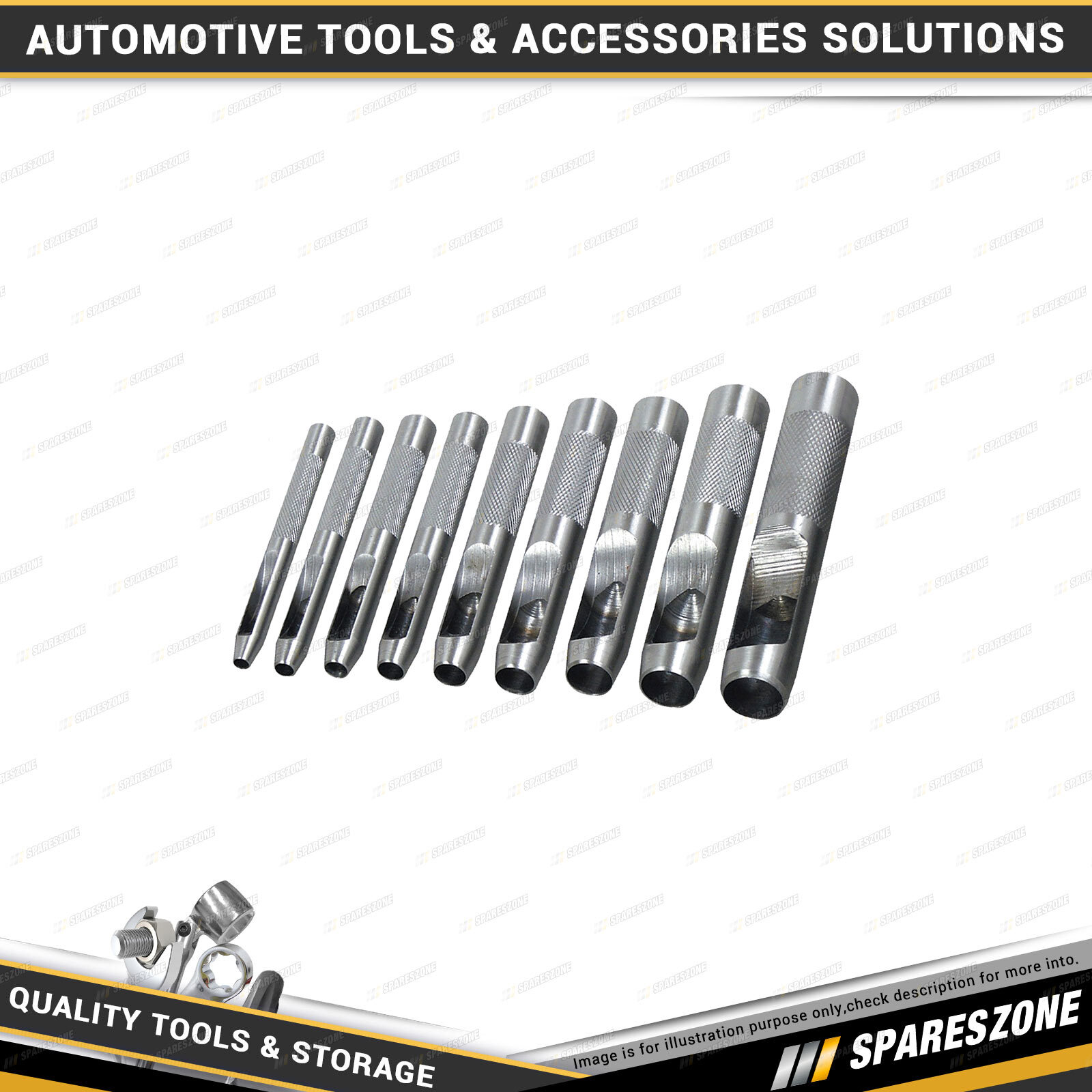 Contents : 9 Pcs of PK Tool Hollow Punch Set