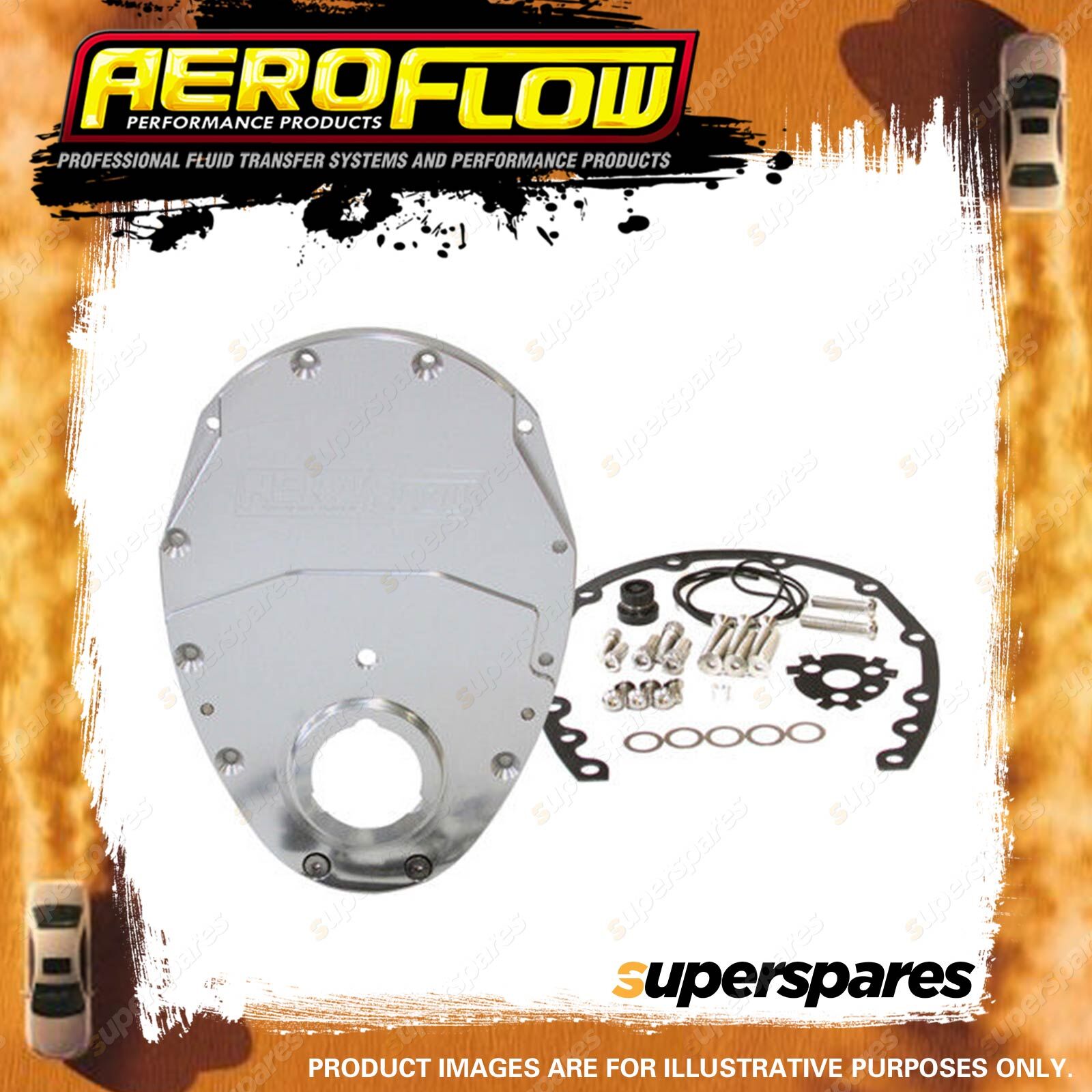 | Aeroflow performance products has developed a 2 piece billet timing cover CNC machined from 6061-T6 Billet aluminium. Includes gaskets, seals, cam locking plate, roller cam button and bolt kit. |