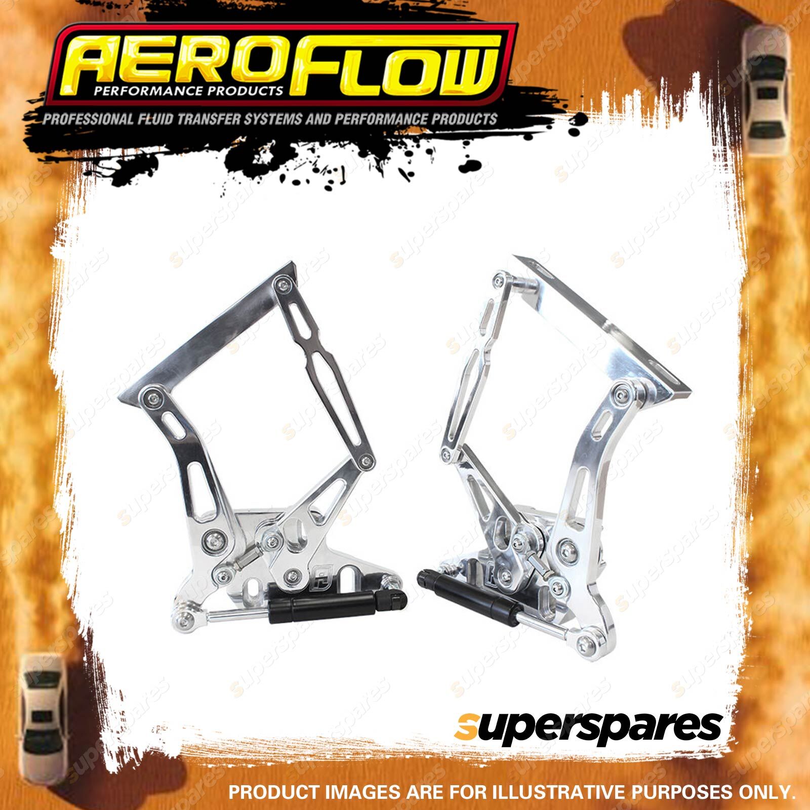 | Aeroflow Billet bonnet hinges are machined from 6061-T6 aluminium. No modifcations are necessary, they simply bolt in place of your OE steel hinges. Aeroflow billet hinges include quality ball bearing joints and mounting bolts. Available in polished alloy, machined silver or shiny black anodised fnish. |