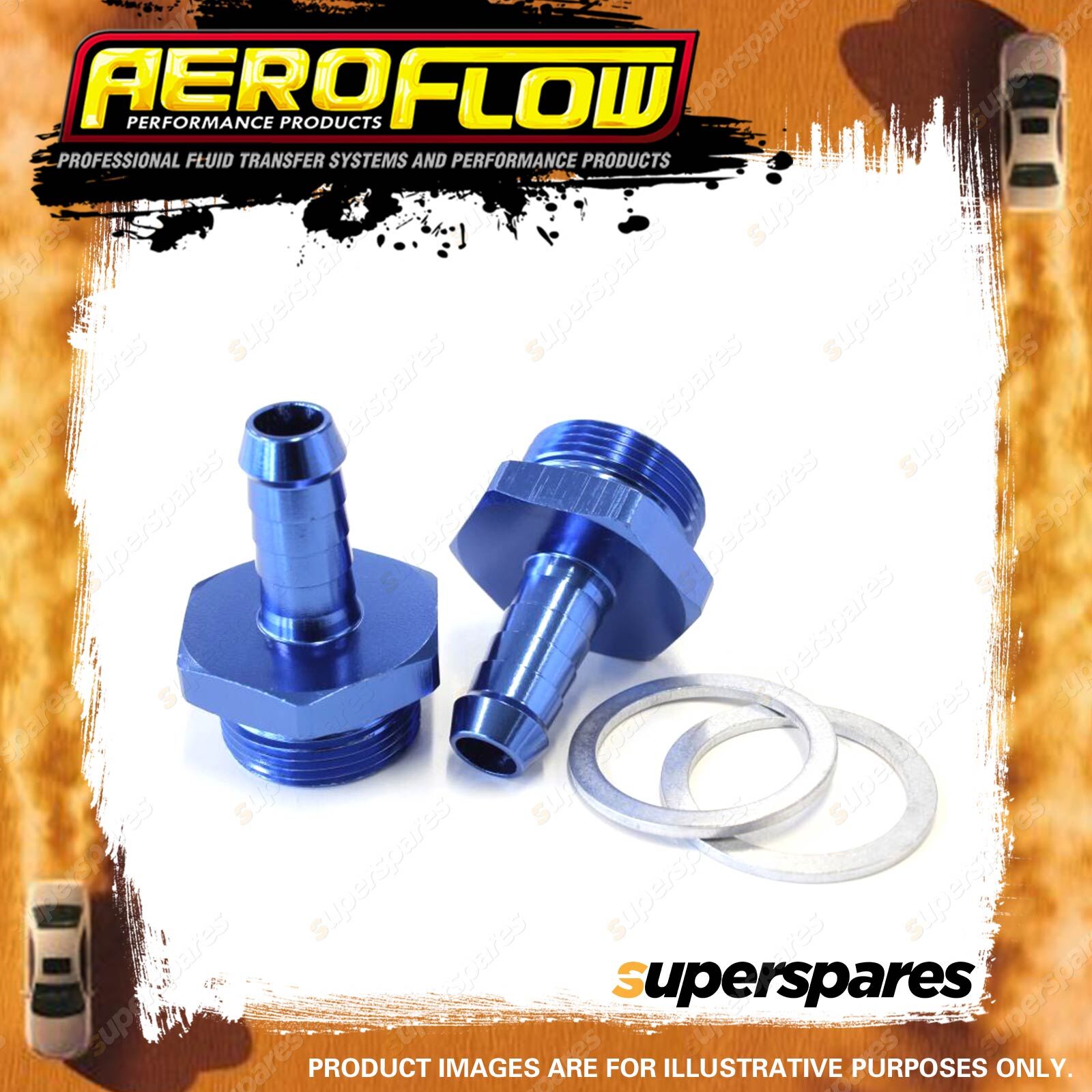 Contents: Carburettor Adapters Male Holley Inlet Feed Brands: AEROFLOW Color: Blue Size: 7/8" -20 to 3/8" Note: Optional Teflon washers AF59-2671 (2 per pack) | ![]() |