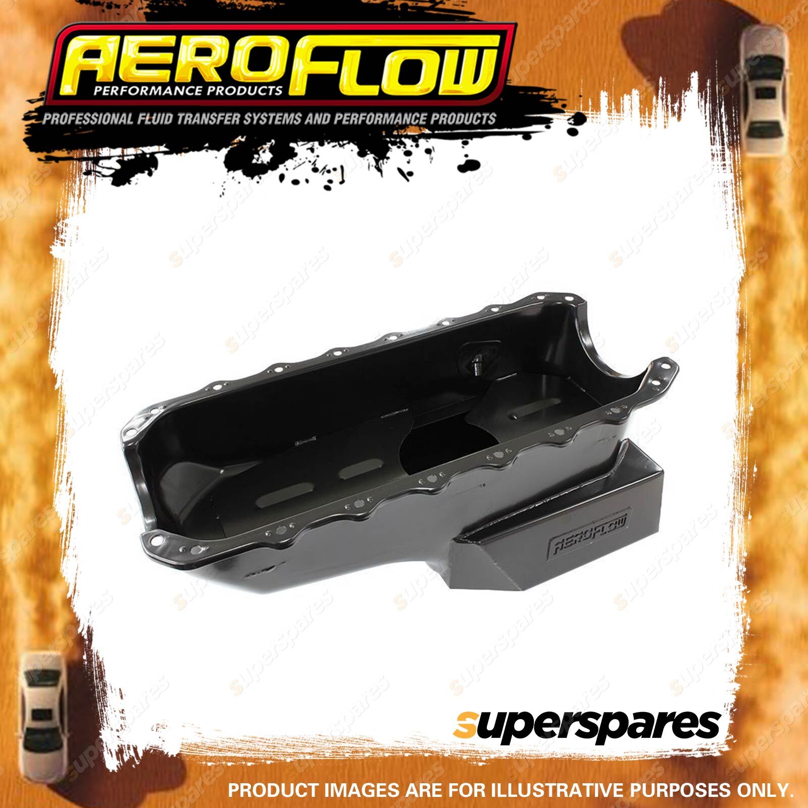 | Aeroflow's range of super oil pans available for most popular V8 engines are the perfect choice for street or track driven high performance engines. These pans start out as new stamped steel pans which are customised with specially designed extra oil capacity wings. These wings allow extra oil capacity without affecting ground clearance which helps maintain more constant oil temperatures for reliability and feature windage trays and crank scrapers. Available in black finish. |