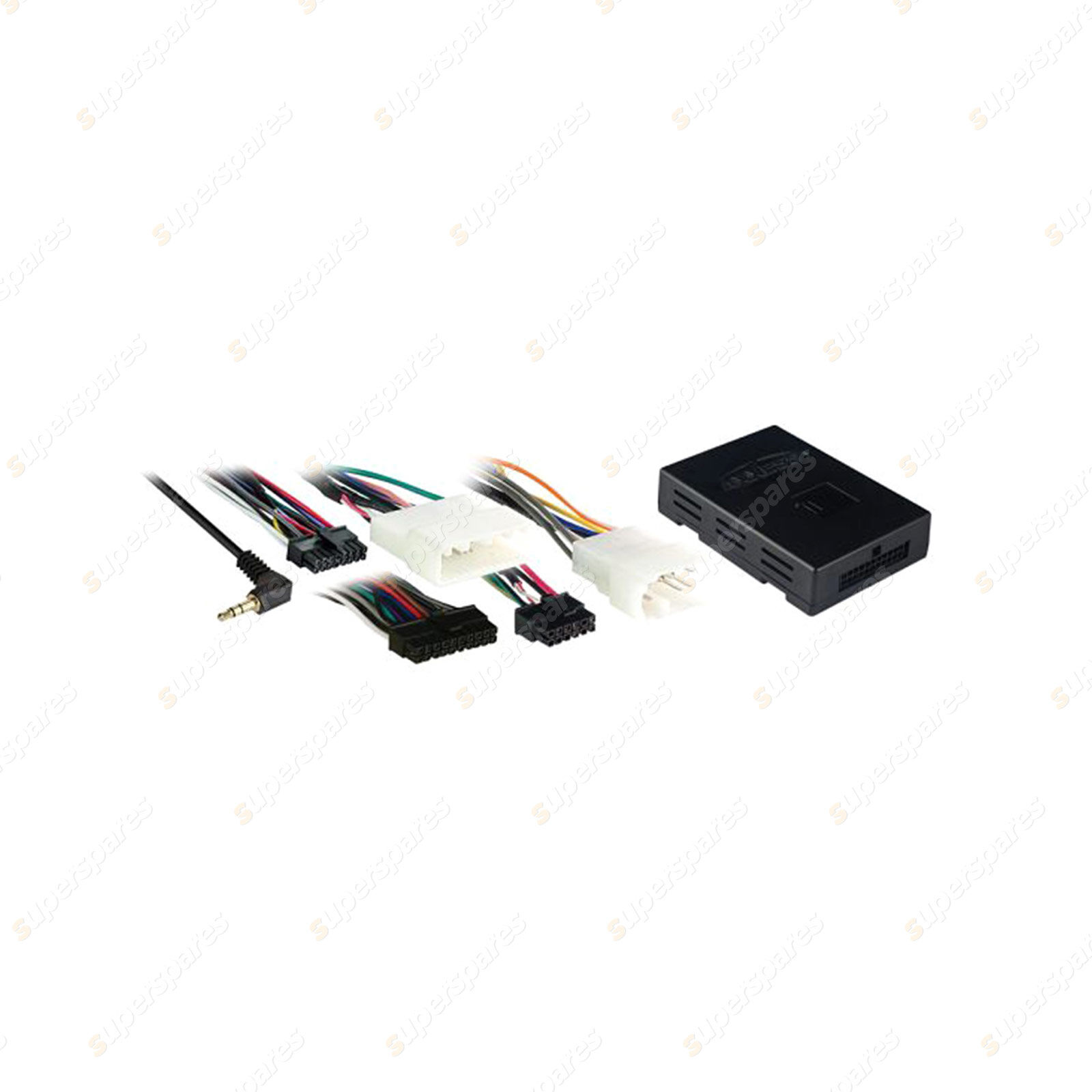 The AXTOTY2 by Axxess Interface is an amplifier retention interface that allows the factory OEM amplifier to be retained in various Toyota vehicles when upgrading to an aftermarket headunit. The interface retains audio balance and fade functions and provides handbrake and reverse trigger outputs which are used when installing various aftermarket audio visual headunits. While the interface does include a harness specifically for various Toyota Vehicles, it is not a complete plug and play solution, a number of wires need to be connected between the AXTOTY2 and the aftermarket headunit, it is recommended that wires are soldered for the best connection. This interface is also pre-wiired for the AXSWC Steering Wheel Control Interface (AXSWC sold separately).