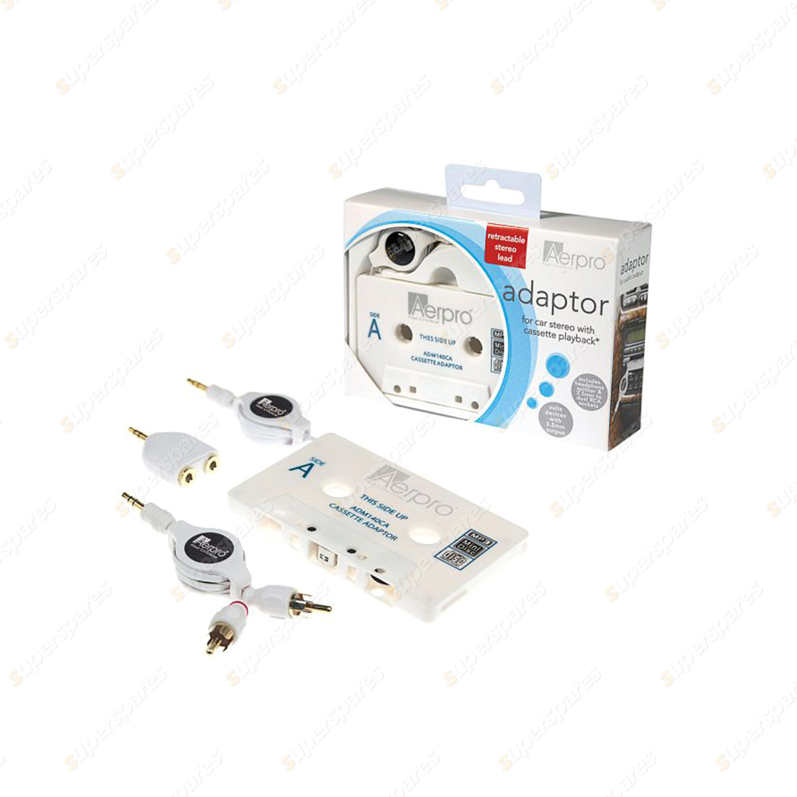 The Aerpro ADM140CA Cassette Adaptor allows playback of smartphones and MP3 players through a cassette player. The kit includes with 3.5mm Stereo lead, a 3.5mm stereo lead splitter and dual RCA to stereo lead adaptor. If you still have a cassette player at home or in your vehicle and want to play music from your smartphone or mp3 player this is the product for you.