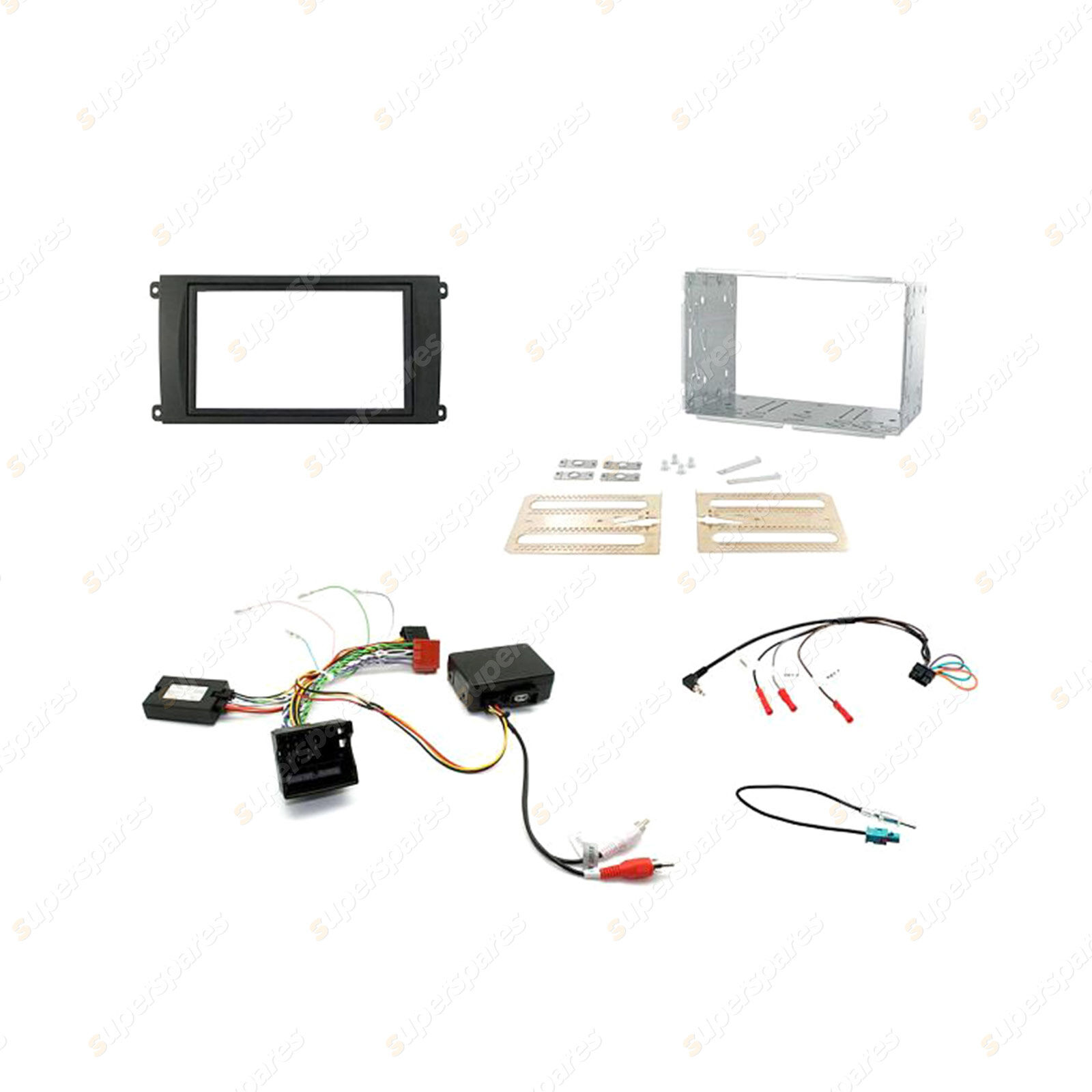 Complete a full aftermarket double din headunit installation in your Porsche Cayenne (2002-2008) with PCM3 factory headunit system from start to finish with this Aerpro vehicle specific headunit installation kit, containing everything you need for a perfect upgrade in one box. This kit includes: Facia kit, mounting cradle, OEM headunit removal keys, steering wheel control interface with amp retention, antenna adapter and universal patch lead. To make the installation process even easier, simply add Aerpro APP8 or APP9 aftermarket headunit harness adapters which will connect from the aftermarket headunit directly into the steering wheel control interface harness supplied in this kit.