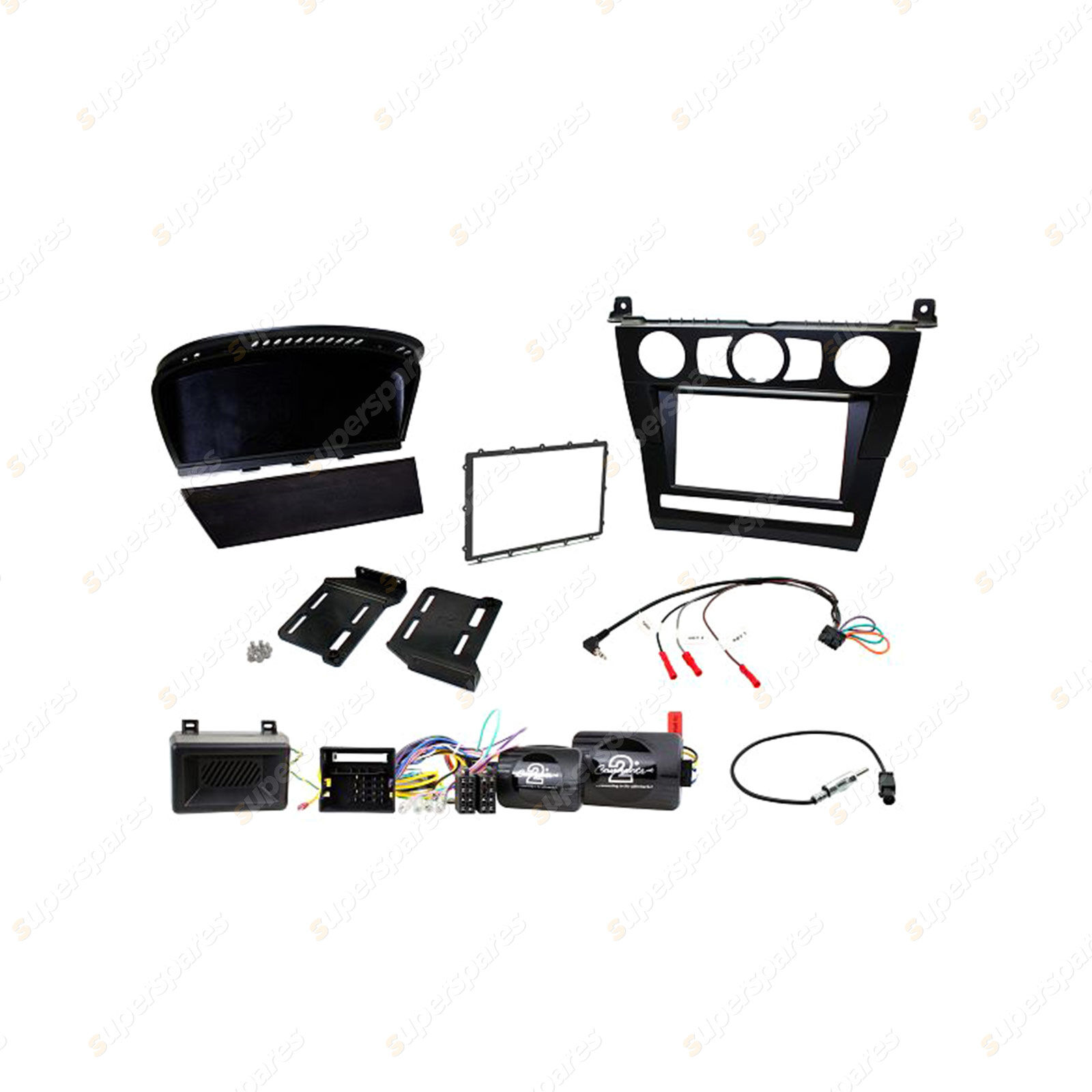 Complete a full aftermarket double din headunit installation in your BMW 5 Series E60, E61 (2004-2010) from start to finish with this Aerpro vehicle specific headunit installation kit, containing everything you need for a perfect upgrade in one box. This kit includes: Facia kit, plastic brackets, trim ring, top screen insert, rubber mat, screws, steering wheel control & warning tone interface, antenna adapter and universal patch lead. To make the installation process even easier, simply add Aerpro APP8 or APP9 aftermarket headunit harness adapters which will connect from the aftermarket headunit directly into the steering wheel control interface harness supplied in this kit.