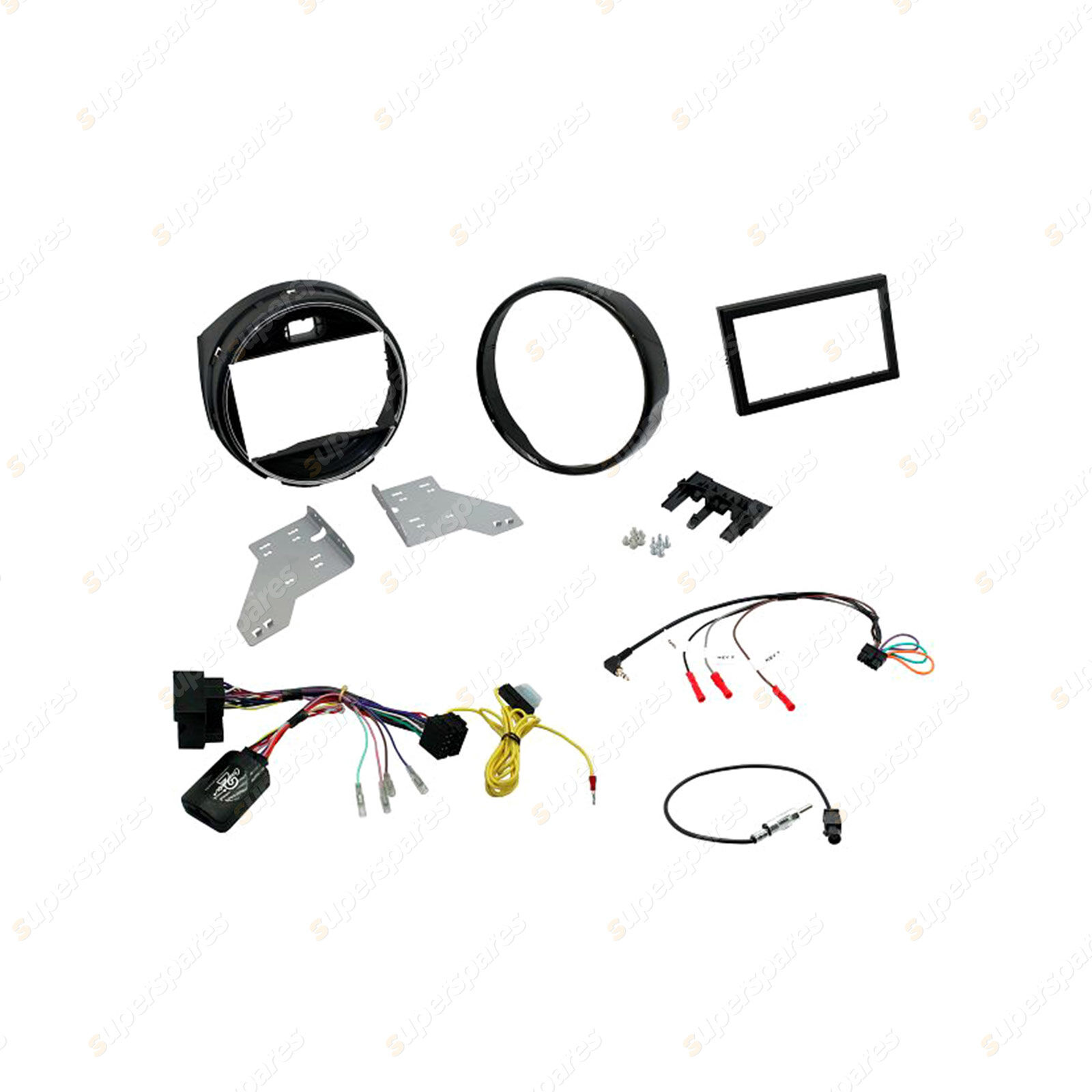 Complete a full aftermarket double din headunit installation in your Mini Cooper (2014-on), from start to finish with this Aerpro vehicle specific headunit installation kit, containing everything you need for a perfect upgrade in one box. This kit includes: gloss black double din facia kit, metal mounting brackets, trim panel, steering wheel control interface, antenna adaptor and universal SWC patch lead. Installation of the aftermarket headunit is simplified even further when paired with the optional Aerpro APP9 Headunit Secondary ISO Harness & SWC Patch Lead, which connects between the aftermarket headunit and the Aerpro Steering Wheel Control Interface. The included interface is CANBUS compatible and provides various outputs including Reverse Trigger, Park Brake, Speed Pulse and Illumination. It also has a yellow constant power cable that needs to be wired directly to the vehicles battery.