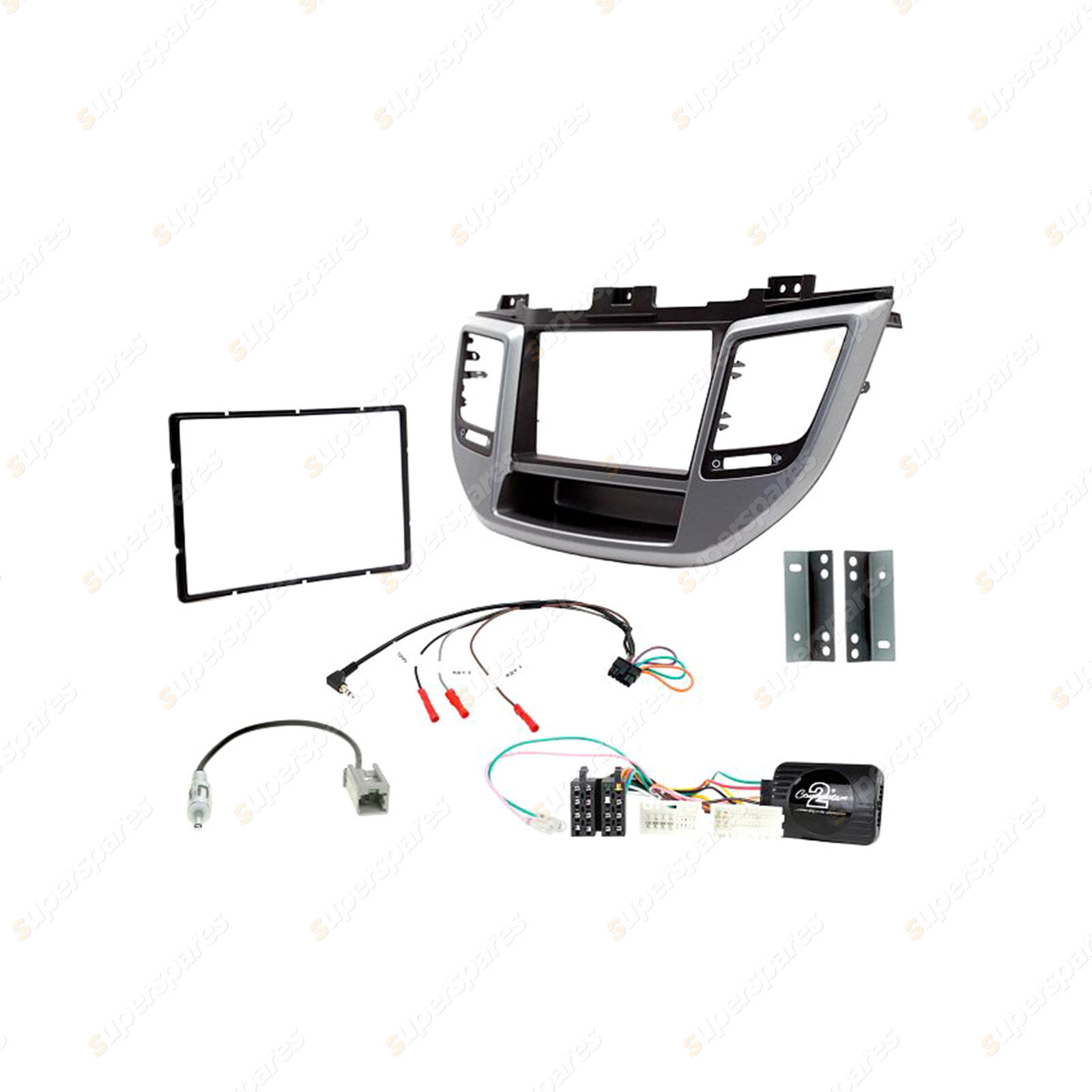 Complete a full aftermarket double din headunit installation in your Hyundai Tucson (2015 on) from start to finish with this Aerpro vehicle specific headunit installation kit, containing everything you need for a perfect upgrade in one box. This kit includes: Facia kit, metal brackets, trim ring, steering wheel control interface, antenna adapter and universal patch lead. To make the installation process even easier, simply add Aerpro APP8 or APP9 aftermarket headunit harness adapters which will connect from the aftermarket headunit directly into the steering wheel control interface harness supplied in this kit.