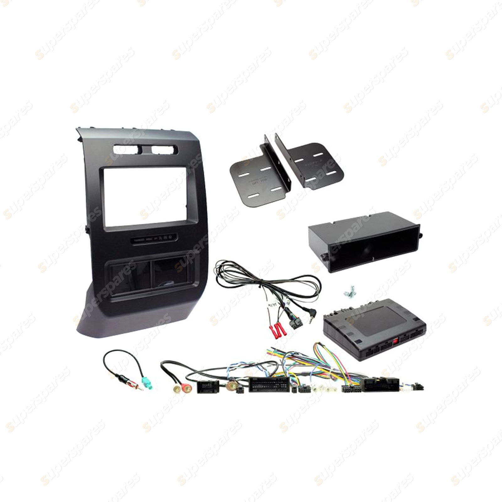 Complete a full aftermarket single or double din headunit installation in your Ford F150 (2015 on) from start to finish with this Aerpro vehicle specific headunit installation kit, containing everything you need for a perfect upgrade in one box. This kit includes: Facia kit with advanced touch screen controls, pocket, mounting brackets, full vehicle integration interface, antenna adapter and universal steering wheel control patch lead. To make the installation process even easier, simply add Aerpro APP8 or APP9 aftermarket headunit harness adapters which will connect from the aftermarket headunit directly into the control harness supplied in this kit.