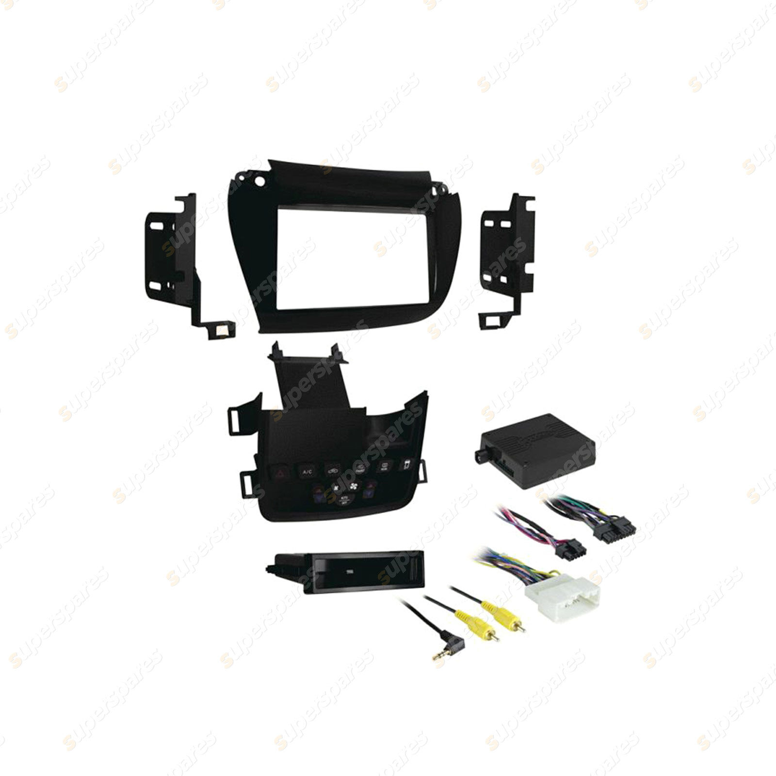 Complete an aftermarket single or double DIN headunit installation in your Dodge Journey or Fiat Freemont (2012-2016) vehicle with OEM 4.3" factory display, with this Aerpro vehicle specific headunit installation kit. This kit includes: a matte black double DIN facia kit, pocket (for single DIN installation), A/C button housing, console bracket, mounting brackets, factory screen retention interface and wiring harness. To retain steering wheel controls the kit comes supplied with a pre-wired loom that connects directly to the AXSWC Universal SWC Interface (sold separately). To retain radio reception APA58 Antenna Adaptor is required (sold separately). Vehicle information and AC controls will continue to display on the factory screen and this kit provides the additional feature of video input, allowing a reverse camera to be connected to the original display. The included wiring harness is bare wire and will need to be soldered to the aftermarket headunits wiring loom. The kit provide various outputs including reverse trigger, park brake and speed pulse, which are often required when installing aftermarket AV headunits.
