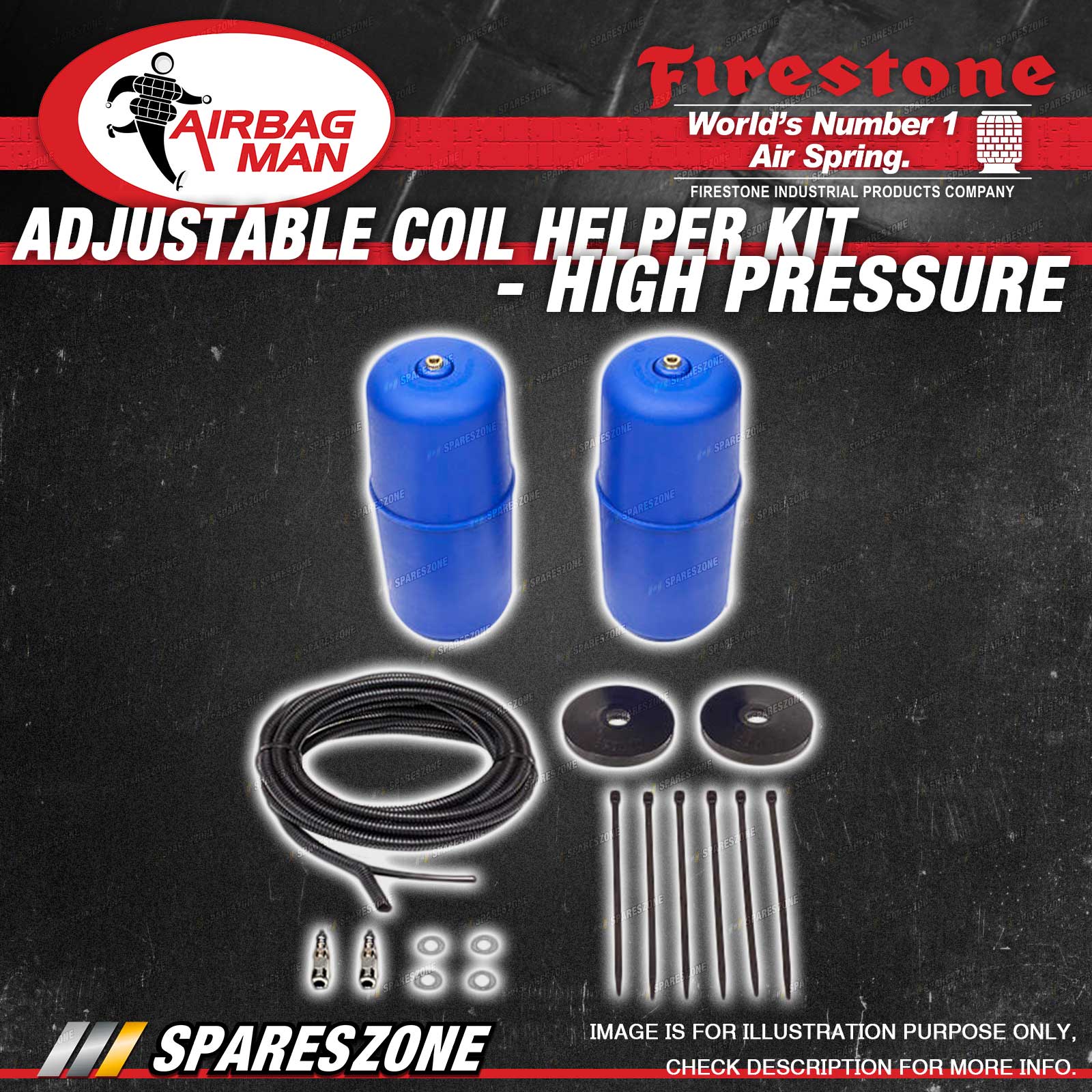 Airbag Man utilise only the best airbags on the market in our kits which include Firestone and Dunlop. Airbag Man's double convoluted leaf helper airbags and blue coil helper airbags from firestone include a lifetime warranty, other styles with a 2 year warranty. |