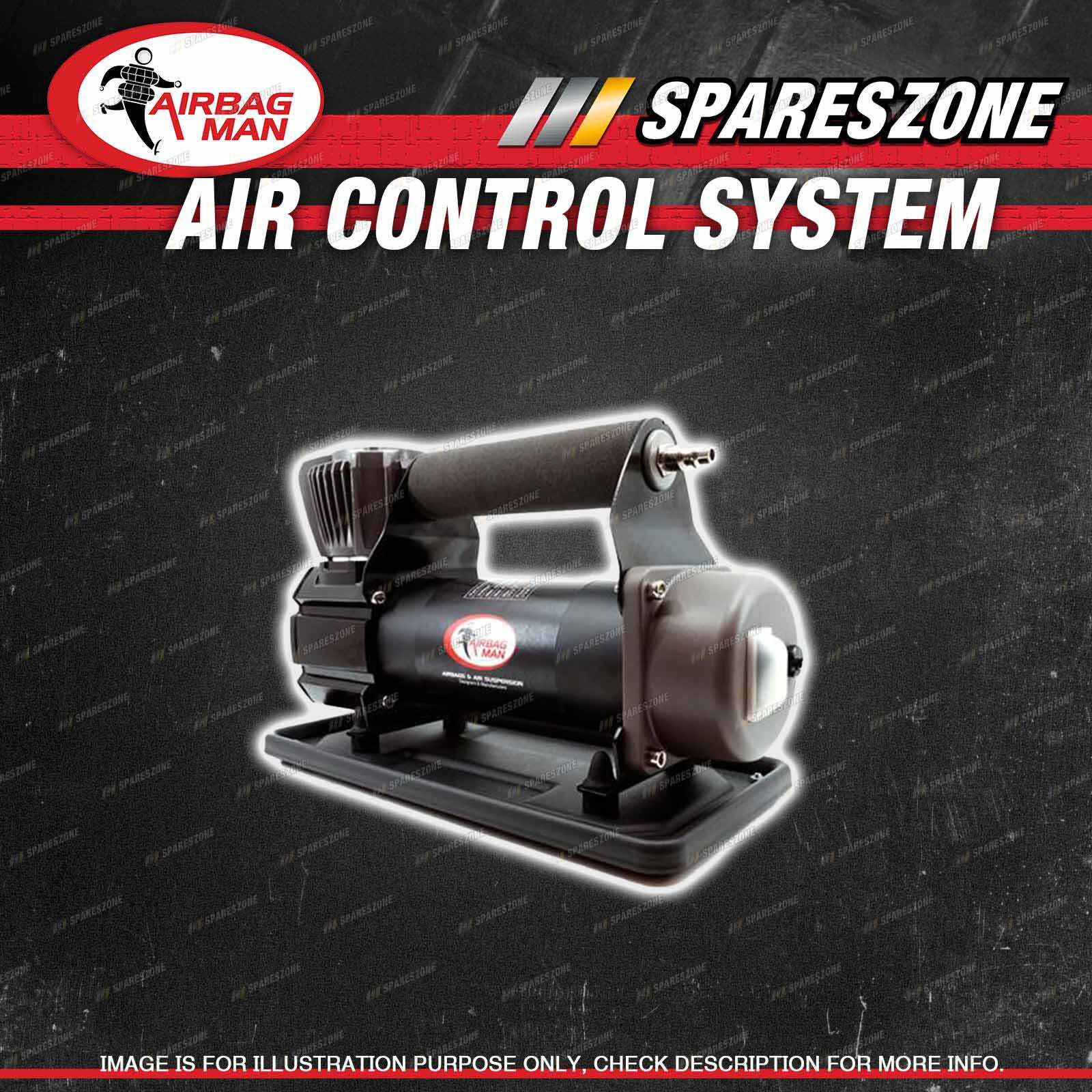 | Note: eBay's compatibility table is not accurate in some cases. Please refer to the following information we have provided for you. Copyright © 2014 - 2023 Spareszone. All rights reserved. Contents : 1 x Airbag Man Portable Compressor 200 psi 13.8 Bar 7m suzie 100% 35 Amps Style : 200 psi (13.8 bar) Details : Portable HD Compressor w/ 7m suzie coil 100% 35 Amps 3.46cfm or 98LPM @ 0PSI Notes : Certified High Flow output - 98LPM / 3.46CFM 100% duty cycle - inflate tyres without waiting 200 PSI Maximum - in-built high temp reset Easy to store, 7m reinforced coil hose 5kg total weight Storage cavity needed for compressor in carry bag:L 360mm x W 220mm x H 200mm Compressor only: L 340mm x W 140mm x H 195mm |
