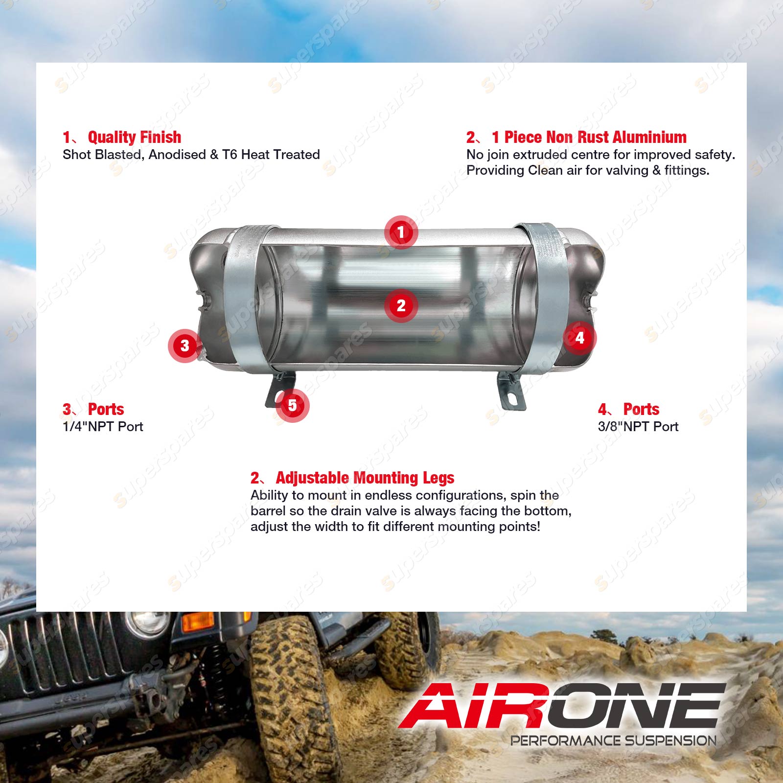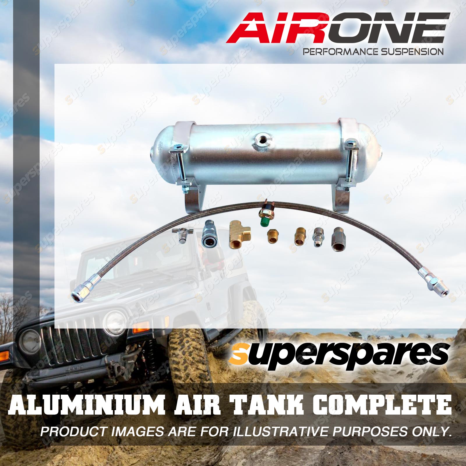 Content : 1 x Airone 1 Gallon 3 Port Aluminium Air Tank Approx 3 Litres Complete Kit Ideal for running alongside chassis