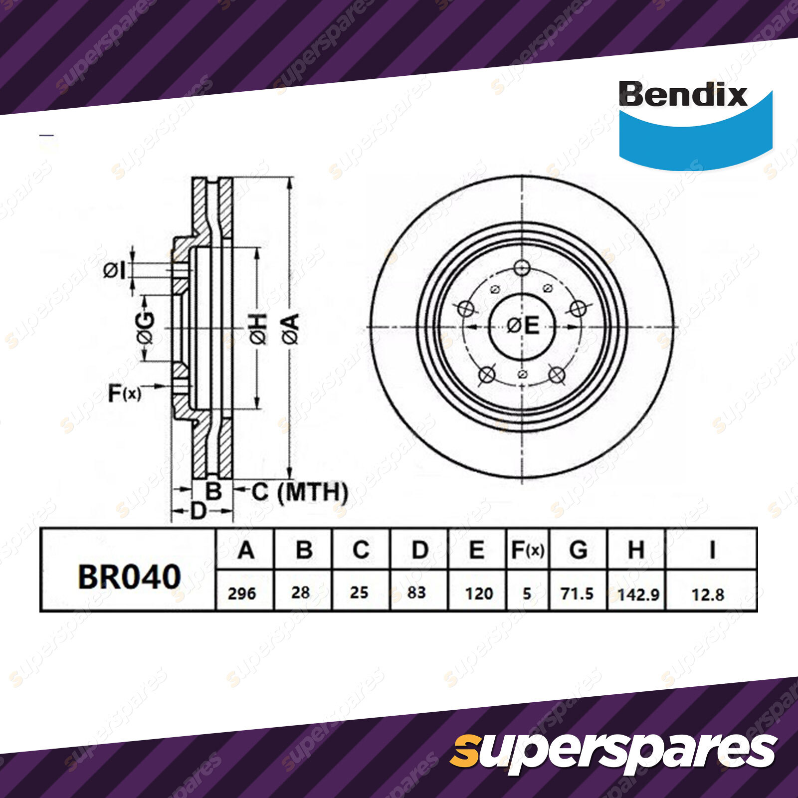 Bendix Ultimate rotors offer the very latest in braking technology and manufacturing processes.Innovative technologies like, HIGH CARBON METALLURGY increases brake performance and stopping power, Diamond Tip Slot that is specifically designed slots and v-shaped dimples to more efficiently expel gasses, dirt and water and SwiftFit Coating is a protective zinc coating which allows for faster, easier installation, Bendix rotors are the perfect complement to the extensive Bendix brake pad range. These leading technologies combined with Bendix's unparalleled experience and absolute quality assurance ensure the Bendix brake disc rotors are ready for the demands of today's vehicles and beyond. | |