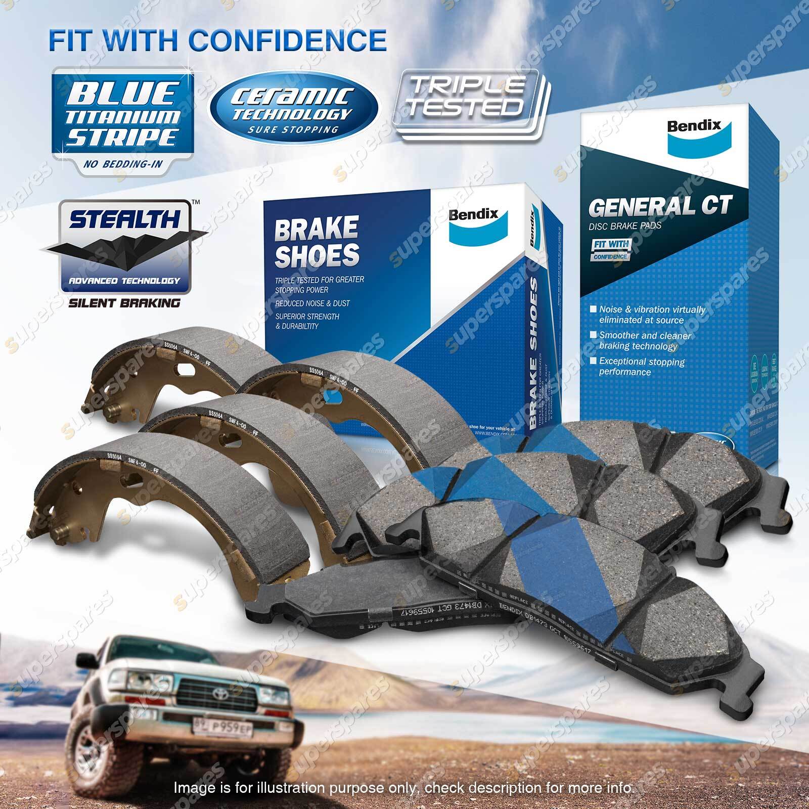 Contents : 4 x Bendix Front General CT Disc Brake Pads + 4 x Bendix Rear Brake Shoes