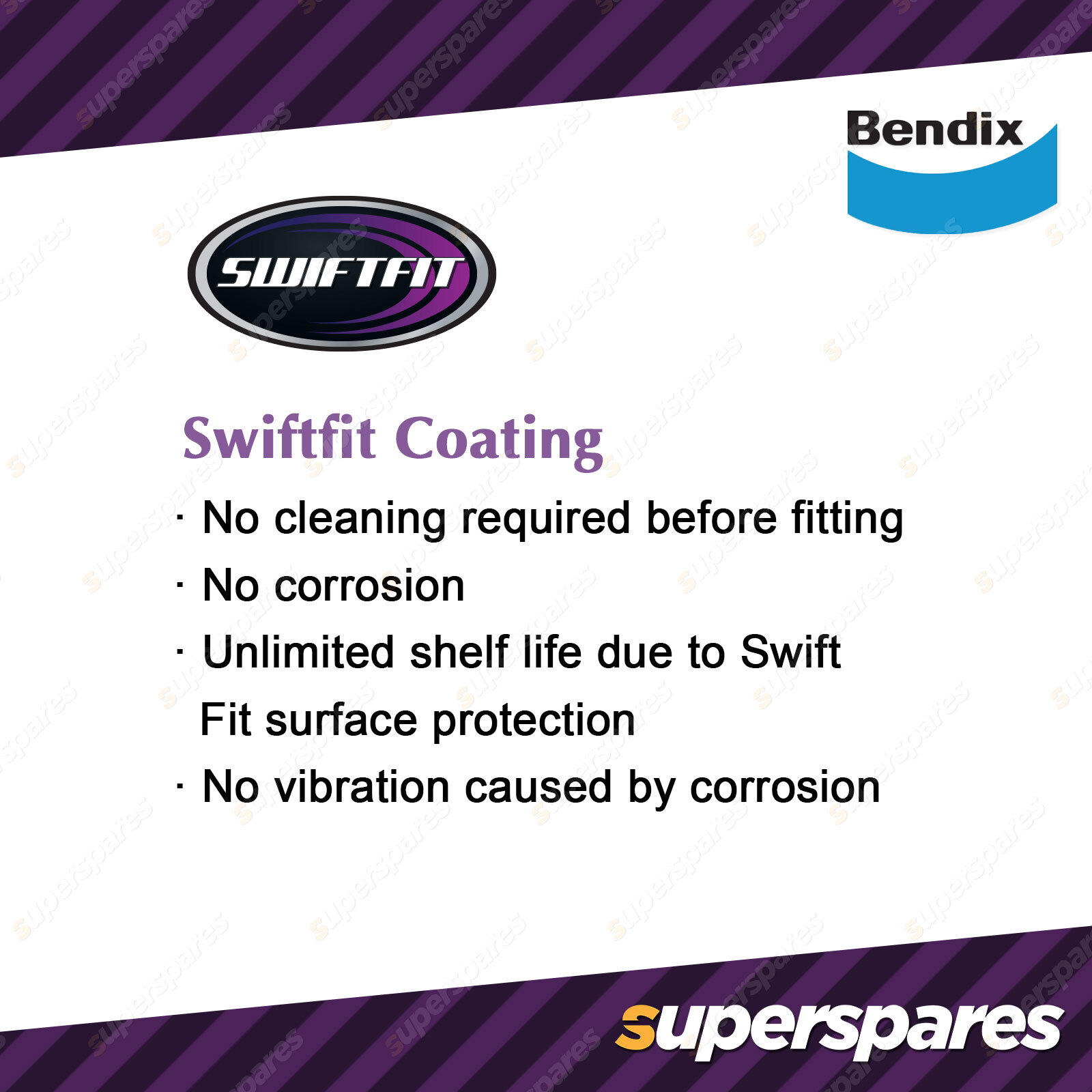 Bendix Ultimate rotors offer the very latest in braking technology and manufacturing processes.Innovative technologies like, HIGH CARBON METALLURGY increases brake performance and stopping power, Diamond Tip Slot that is specifically designed slots and v-shaped dimples to more efficiently expel gasses, dirt and water and SwiftFit Coating is a protective zinc coating which allows for faster, easier installation, Bendix rotors are the perfect complement to the extensive Bendix brake pad range. These leading technologies combined with Bendix's unparalleled experience and absolute quality assurance ensure the Bendix brake disc rotors are ready for the demands of today's vehicles and beyond. | |