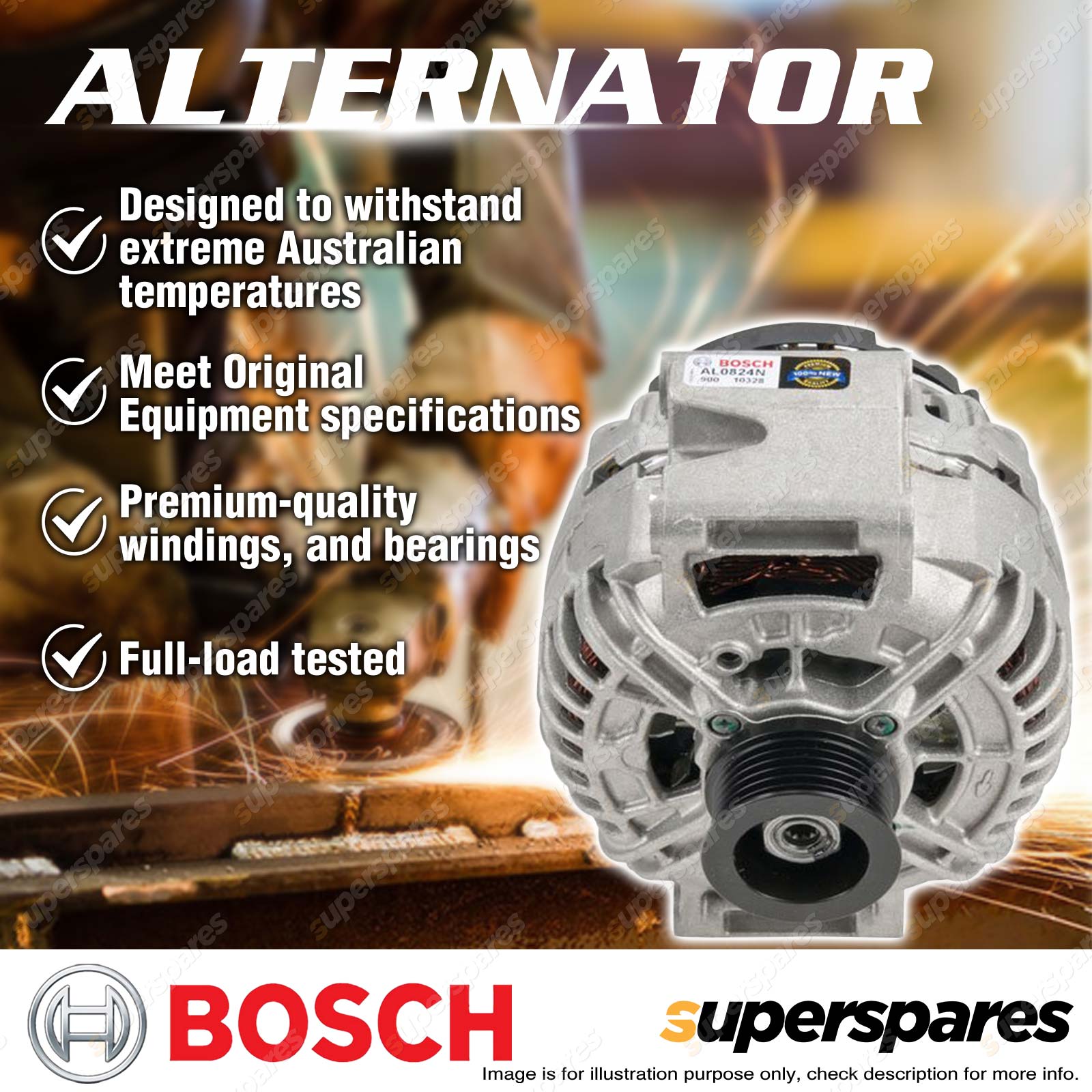Bosch has been a major supplier of new alternators to Original Equipment vehicle manufacturers since 1913. Securing OE certification requires strict adherence to stringent precision and performance criteria. Bosch Premium Alternators are quality built and 100% factory tested to ensure years of reliable performance, even under the most extreme operating conditions. The warranty period for Bosch starter motors and alternators is as follows: Passenger vehicle applications - 24 months/40,000km |