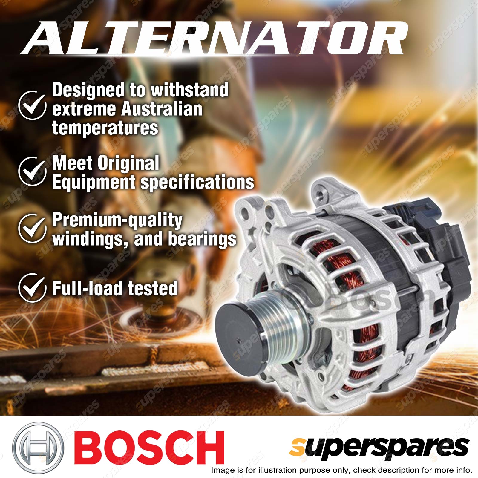 Bosch has been a major supplier of new alternators to Original Equipment vehicle manufacturers since 1913. Securing OE certification requires strict adherence to stringent precision and performance criteria. Bosch Premium Alternators are quality built and 100% factory tested to ensure years of reliable performance, even under the most extreme operating conditions. The warranty period for Bosch starter motors and alternators is as follows: Passenger vehicle applications - 24 months/40,000km |
