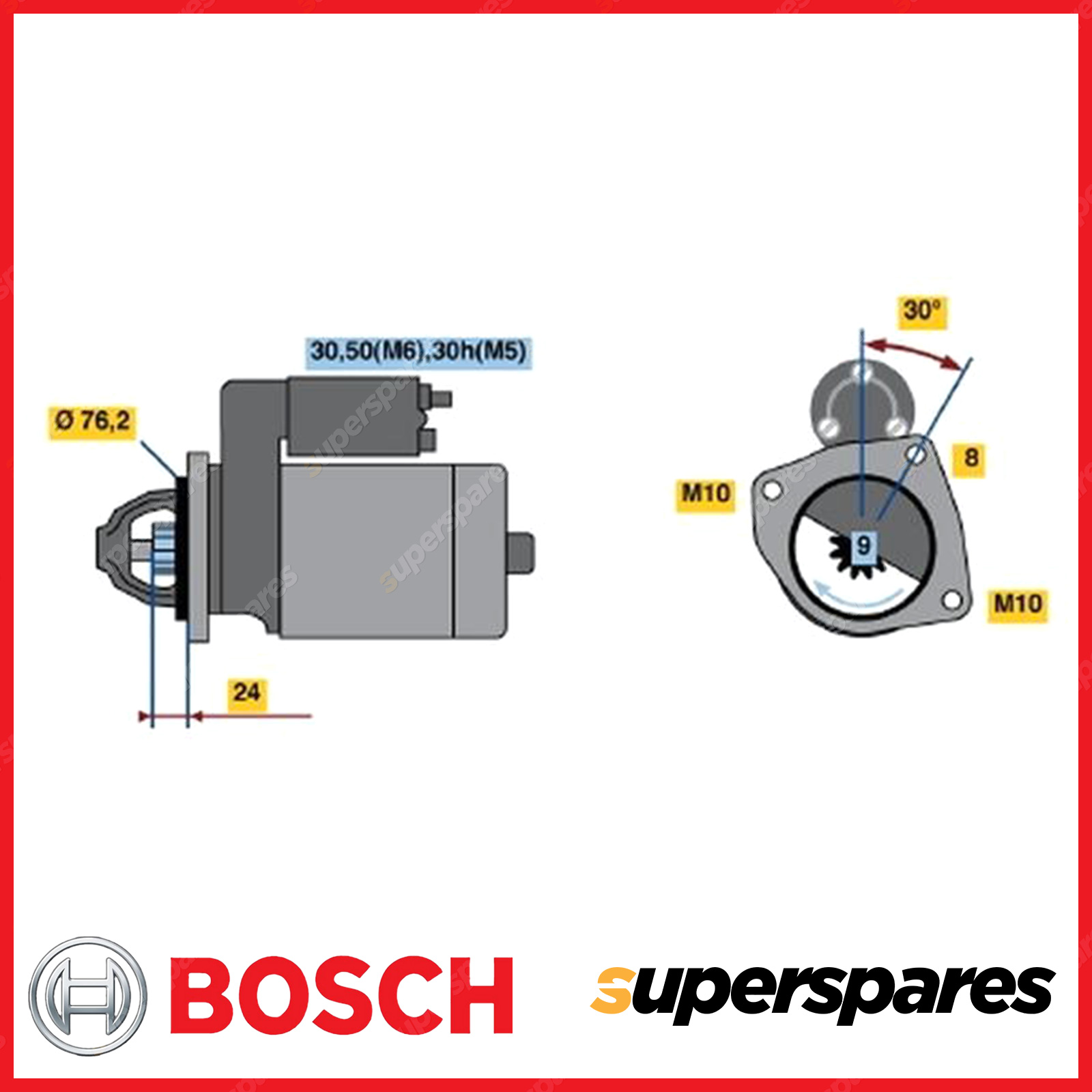 Bosch has been a major car starter manufacturer for over a hundred years. All Bosch engine starters require strict adherence to stringent precision and performance criteria ensuring years of reliable performance, even under the most extreme operating conditions. The warranty period for Bosch starter motors and alternators is as follows: Passenger vehicle applications - 24 months/40,000km |