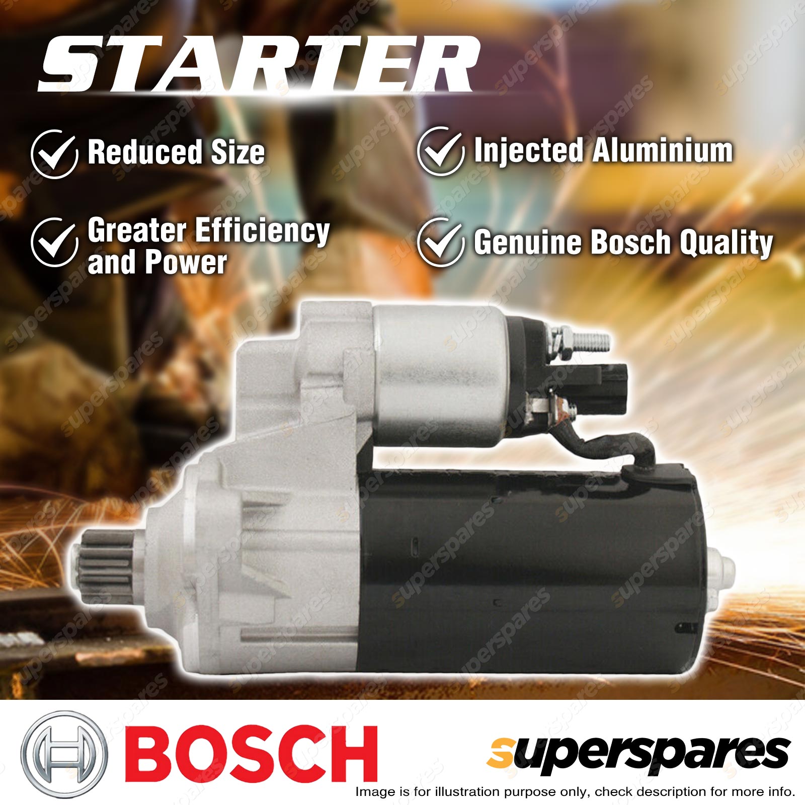 Bosch has been a major car starter manufacturer for over a hundred years. All Bosch engine starters require strict adherence to stringent precision and performance criteria ensuring years of reliable performance, even under the most extreme operating conditions. The warranty period for Bosch starter motors and alternators is as follows: Passenger vehicle applications - 24 months/40,000km |
