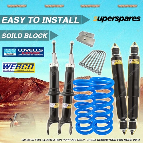 Superspares also stocks a wide selection of Webco suspension lift kits for drivers seeking extra clearance, improved approach angles, or better handling under accessory weight. These kits combine shocks, coils, leaf springs, shackles, or torsion bars–depending on the vehicle–to deliver a balanced, reliable lift. Whether you need a 2-inch everyday touring setup, a pre-assembled strut lift kit for quick installation, or a 3–4 inch configuration for more serious off-road builds, Webco has an option ready to go.