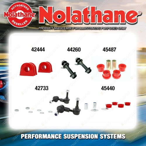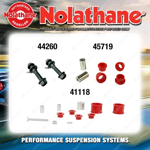 At Superspares, you’ll find one of the widest Nolathane ranges available online. From sway bar mount bushes and shackle bush kits to front and rear suspension overhaul packs, we stock solutions designed to suit popular models across Ford, Holden, Toyota, Mitsubishi, Subaru, Nissan, BMW, Kia and more. Whether you're restoring a classic Falcon, fine-tuning a Commodore, upgrading a Pajero or tightening the handling of a Subaru WRX, Nolathane provides proven reliability and performance.