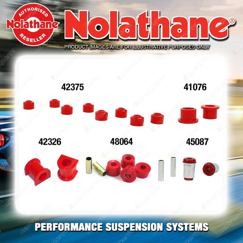 At Superspares, you’ll find one of the widest Nolathane ranges available online. From sway bar mount bushes and shackle bush kits to front and rear suspension overhaul packs, we stock solutions designed to suit popular models across Ford, Holden, Toyota, Mitsubishi, Subaru, Nissan, BMW, Kia and more. Whether you're restoring a classic Falcon, fine-tuning a Commodore, upgrading a Pajero or tightening the handling of a Subaru WRX, Nolathane provides proven reliability and performance.