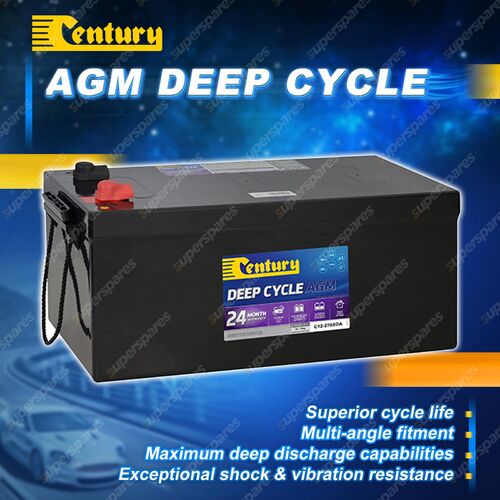 Century Battery - Deep Cycle Flooded| Warranty | Volts | AH @ 20HR | Length(mm) | Width(mm) | Height(mm) | Total Height(mm) | Polarity | Weight(kg) | Term Type | Hold down | Special Features |
