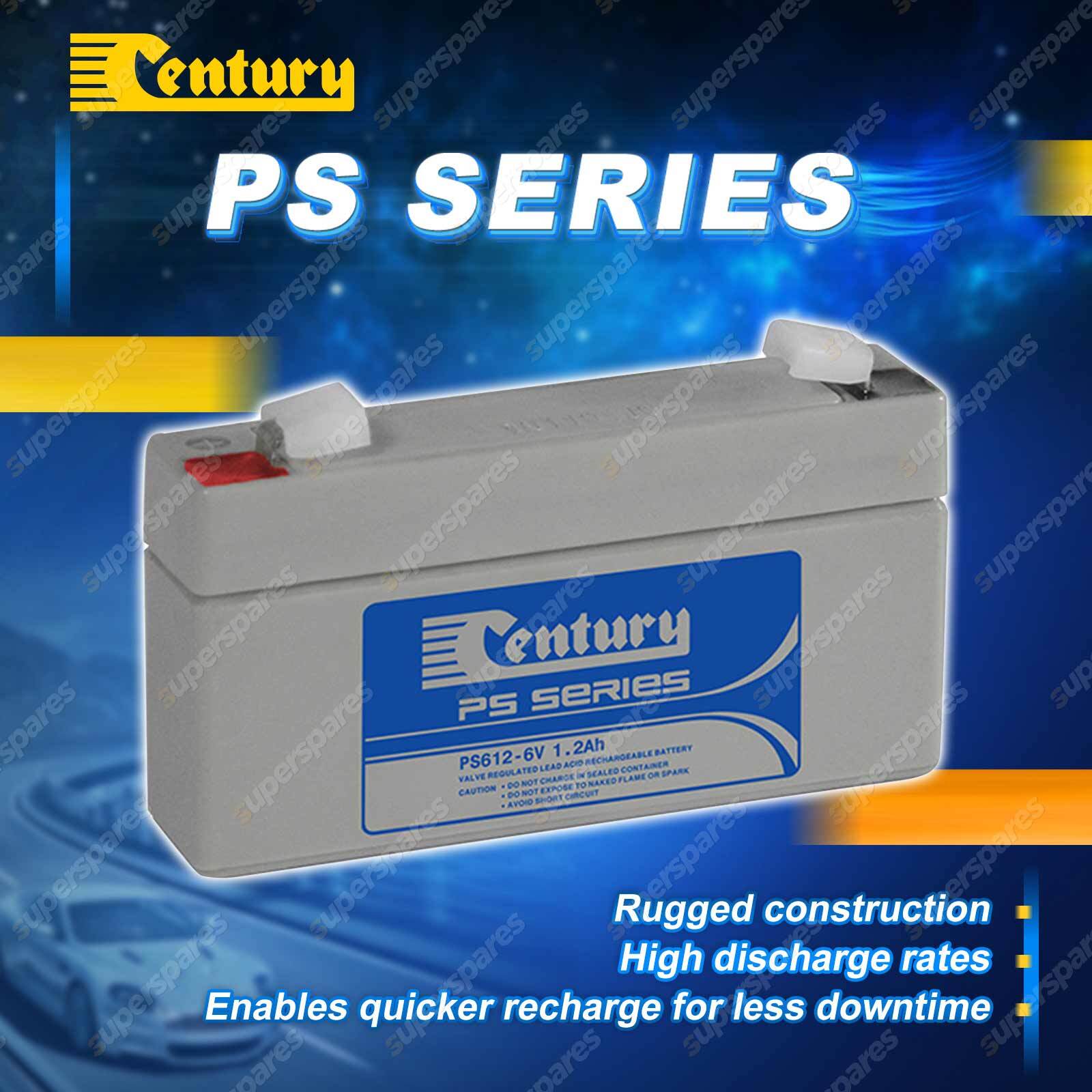 ![]() | PS Series - 6 Volt Century PS Batteries are a range of superior quality, high performance multi-purpose batteries designed to provide dependable primary and back-up power in domestic and commercial applications.