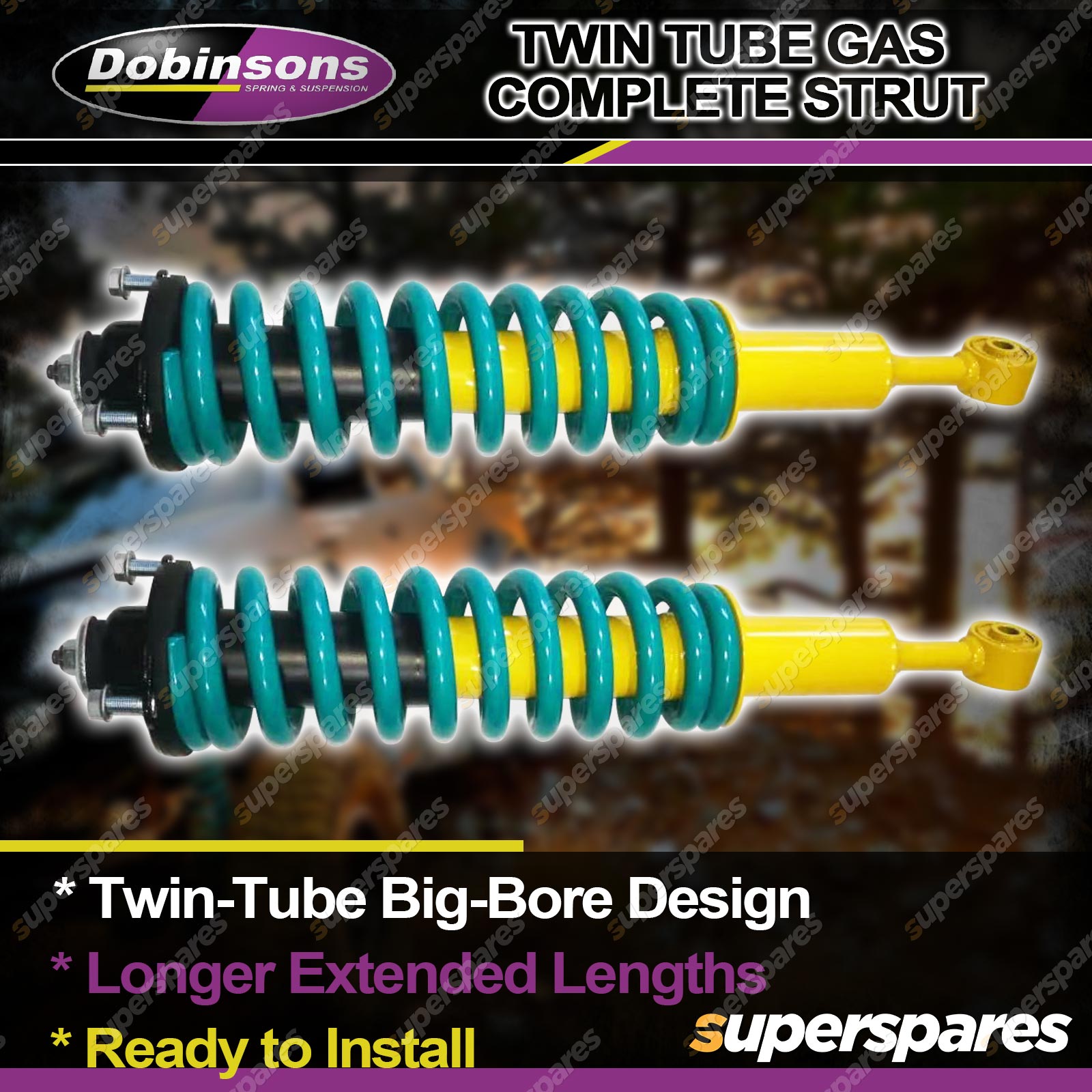![]() | Dobinsons Twin Tube Nitrogen Gas charged shock absorbers are made from the world's highestquality external and internal parts sourced worldwide. They provide a significant increase inperformance over the standard shock absorbers.