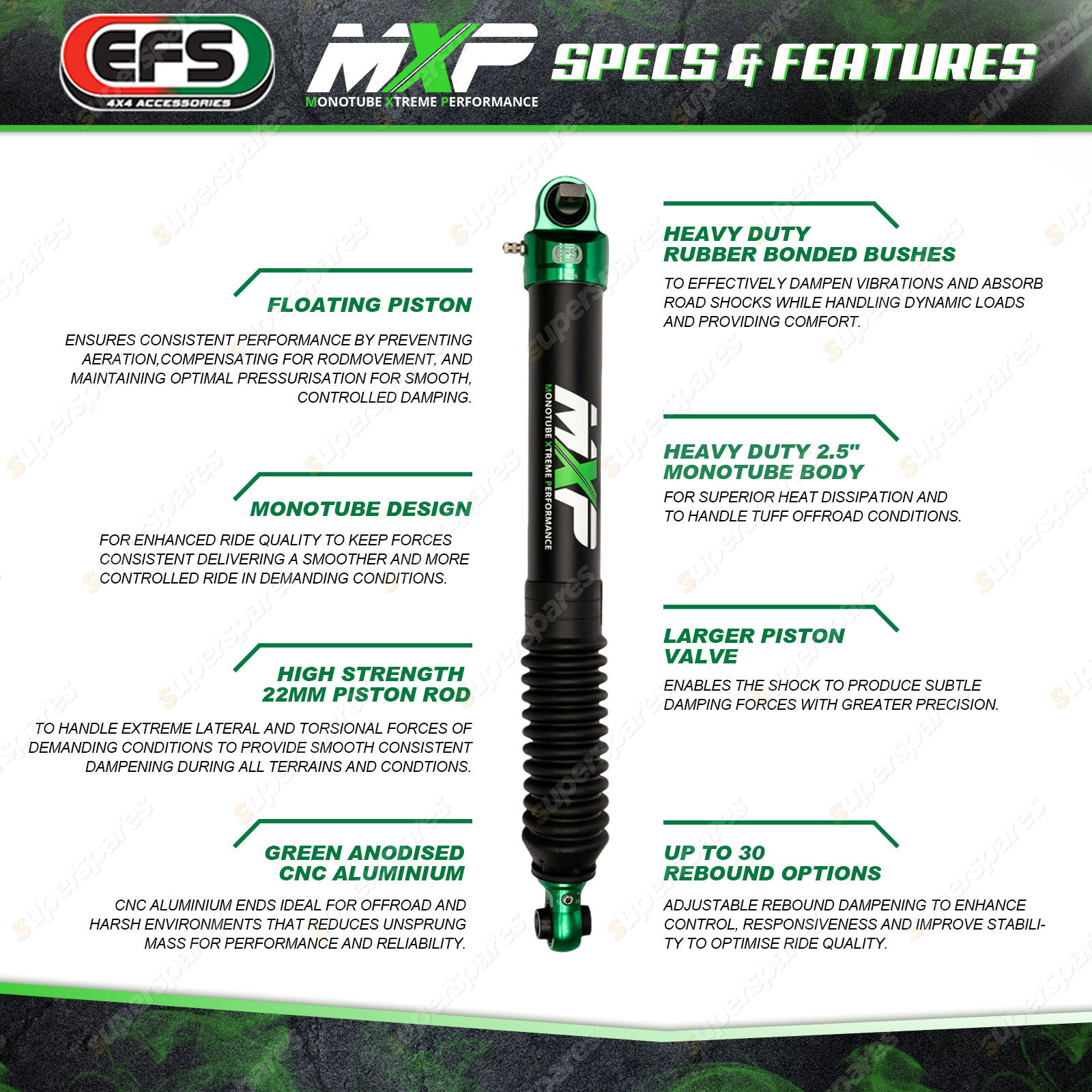 Contents: 2 Pcs Rear EFS 75mm Lift MXP Shock Absorbers (Note:Body Size Is 57mm Diameter. 10-1126 Must Be Installed When Fitting This Shock) Suit: Suzuki Jimny GJ 3 Door Swb Jb74 Models 11/2018+