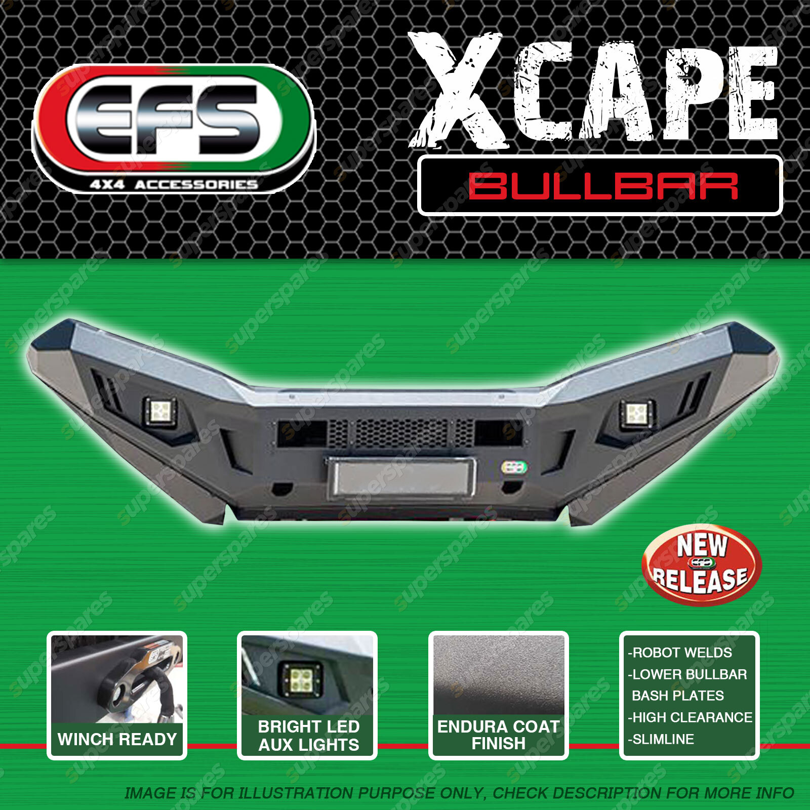 | Specifications: EFS Xcape range of bars have been designed and developed to suit harsh climate and conditions from outback to the city, these are made from high-quality steel and finished in EFS's Endura coat for maximum protection. The Xcape bars complies with Aust design rules and airbag compliant.
