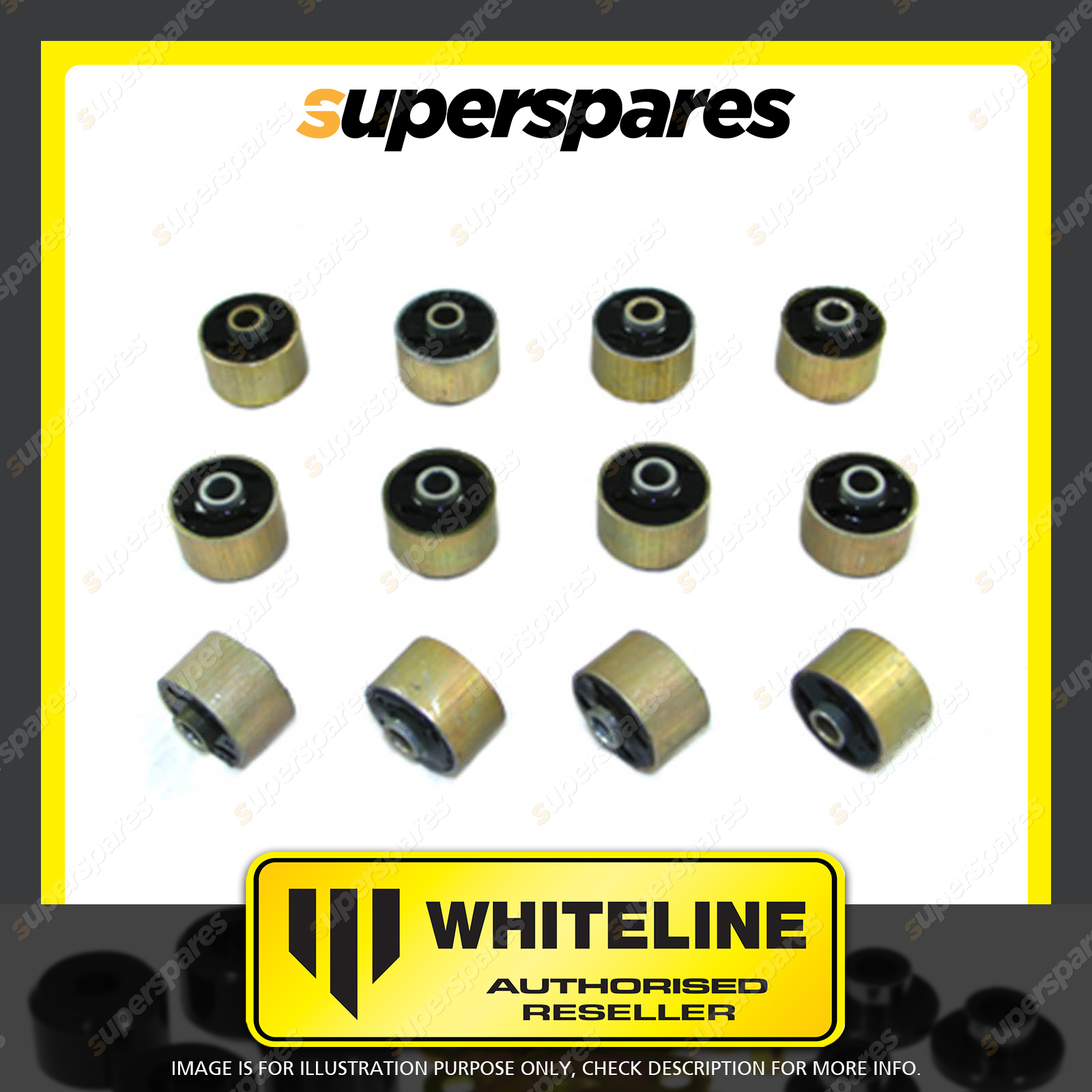 | Contents : Whiteline Front Auxiliary - transfer shaft bushing Warranty : 3 Year / 60,000Kms Kit Contents : 12 Shell Bushings, Install Guide |