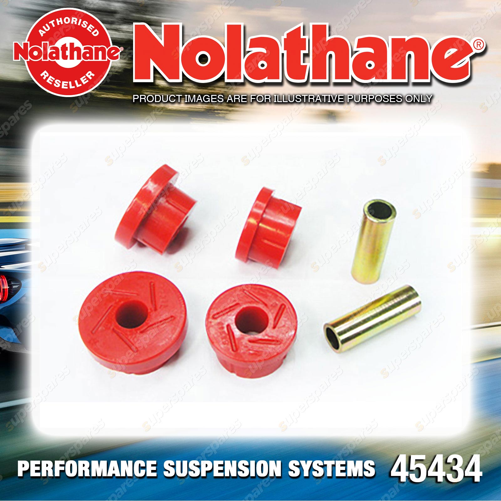 | Contents : Nolathane Front Control arm - lower inner front bushing Warranty : 3 Year / 60,000Kms Kit Contents : 4 Bushings, 2 Tubes, Install Guide, Grease |