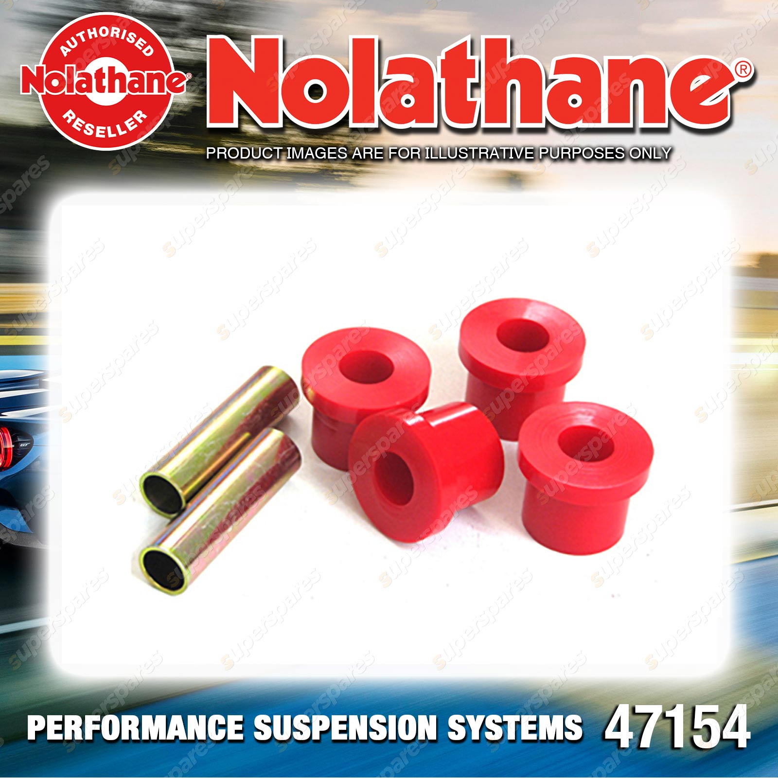 | Contents : Nolathane Front Control arm - lower inner front bushing Warranty : 3 Year / 60,000Kms Kit Contents : 4 Bushings, 2 Tubes, Grease |